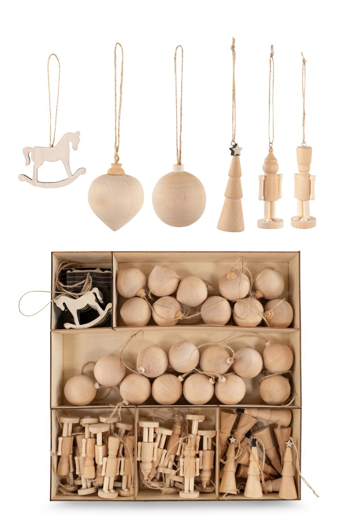 60-teiliges Set mit liebevoll gestalteten Holzanhängern