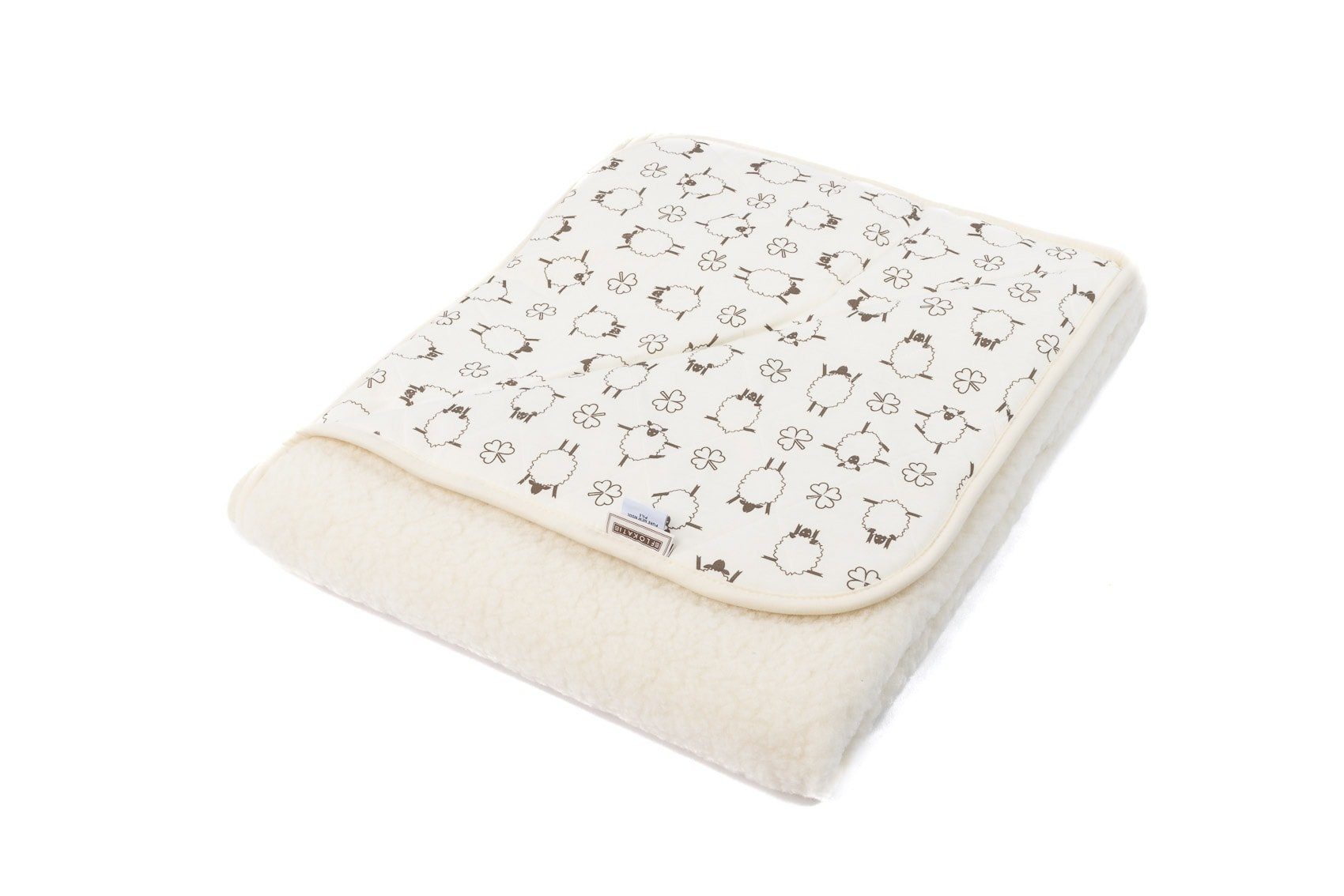 Alpin Kinder-Wollflor-Bettdecke von Flokati aus reiner 100 % Schurwolle sorgt für wohlige Wärme ohne zu schwitzen. Die Abseite aus reiner Baumwolle mit bedruckten Schafen sorgen für unbeschwertes einschlafen.