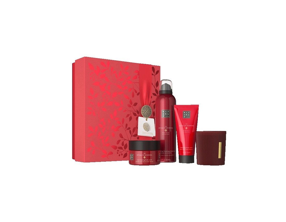 Inhaltsstoffe | The Ritual Of Ayurveda Body Cream: Aqua/Water, Cetearyl Alcohol, Glycerin, Caprylic/Capric Triglyceride, Propylheptyl Caprylate, Undecane, Helianthus Annuus (Sunflower) Hybrid Oil, Parfum/Fragrance, Prunus Amygdalus Dulcis (Sweet Almond) Oil, Rosa Damascena Flower Oil, Tocopheryl Acetate, Allantoin, Tocopherol, Ubiquinone, Tridecane, Isohexadecane, Cetyl Palmitate, Ceteareth-20, Glyceryl Stearate, Propylene Glycol, Carbomer, Sodium Polyacrylate, Ceteareth-12, PEG-40 Hydrogenated Castor Oil, Phenoxyethanol, Caprylyl Glycol, Potassium Sorbate, Benzyl Alcohol, Sodium Benzoate, Linalool, Hexyl Cinnamal, Limonene, Coumarin, Citronellol, Benzyl Benzoate, Geraniol, Cinnamyl Alcohol, Citral, Sodium Hydroxide, Citric Acid.The Ritual Of Ayurveda Candle: See Warningthe Ritual Of Ayurveda Body Scrub: Sodium Chloride, Maris Sal/Sea Salt, Ethylhexyl Stearate, Isopropyl Myristate, Carthamus Tinctorius (Safflower) Seed Oil, Parfum/Fragrance, Prunus Amygdalus Dulcis (Sweet Almond) Oil, Prunus Amygdalus Dulcis (Sweet Almond) Shell Powder, Persea Gratissima (Avocado) Oil, Macadamia Integrifolia Seed Oil, Argania Spinosa Kernel Oil, Simmondsia Chinensis (Jojoba) Seed Oil, Helianthus Annuus (Sunflower) Seed Oil, Moringa Oleifera Seed Oil, Cocos Nucifera (Coconut) Oil, Rosa Centifolia Flower Extract, Tocopherol, Menthol, Benzyl Benzoate, Citronellol, Coumarin, Hexyl Cinnamal, Linalool, Limonene.The Ritual Of Ayurveda Foaming Shower Gel: Aqua/Water, Sodium Coco-Sulfate, Decyl Glucoside, Isopentane, Coco-Glucoside, Glycerin, PEG-120 Methyl Glucose Dioleate, Isopropyl Palmitate, Parfum/Fragrance, Isobutane, Rosa Damascena Flower Oil, Prunus Amygdalus Dulcis (Sweet Almond) Oil, Citric Acid, Sodium Benzoate, Guar Hydroxypropyltrimonium Chloride, Hexyl Cinnamal, Limonene, Linalool, Coumarin, Citronellol, Benzyl Benzoate |