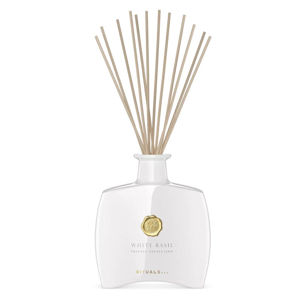 RITUALS White Basil Fragrance Sticks – 450 ml entfalten einen belebenden Duft, der an taufrische Morgen in der Landhausnatur erinnert – mit Noten von Tomatenblatt, Basilikum und Sommerfrüchten, abgerundet durch erdende Basisnoten.