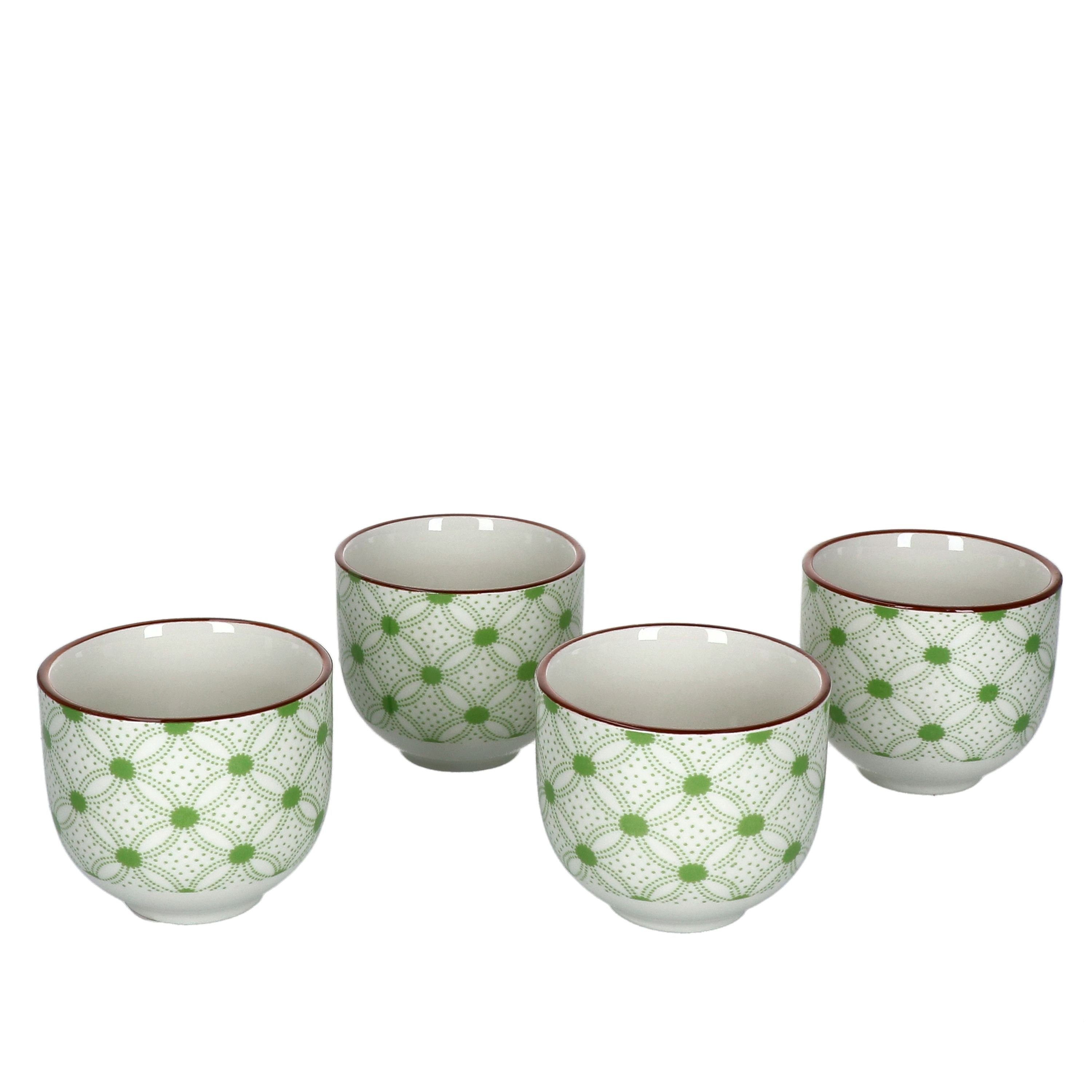 Hübsche Teebecher ohne Henkel in weiß mit grünem Muster für Ihre Heißgetränke.