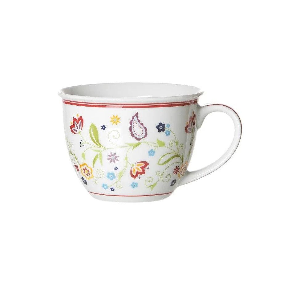 Die Ritzenhoff & Breker Shanti Milchkaffeeobere mit einem großzügigen Fassungsvermögen von 350 ml bringt farbenfrohe Exotik auf Ihren Tisch. Diese formschöne Tasse aus der beliebten Shanti Kollektion besticht durch ihre leuchtenden Farben und das kunstvoll gestaltete, orientalisch inspirierte Muster. Sie ist ideal für Milchkaffee, Cappuccino, Tee oder andere Heißgetränke, die in einer stilvollen Tasse serviert werden sollen.