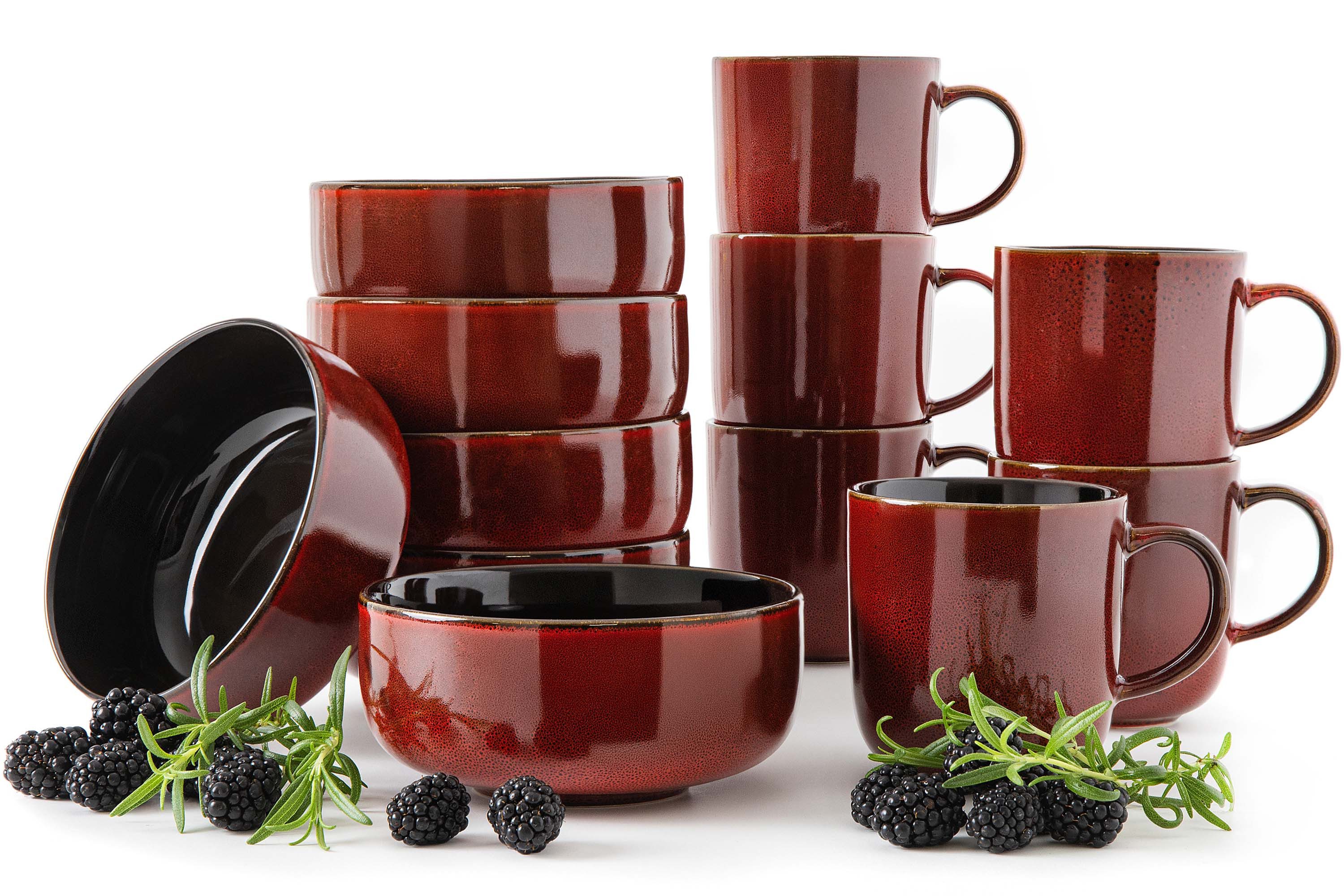 Diese einzigartige Kollektion aus hochwertigem Steingut verbindet Langlebigkeit mit Ästhetik und gewährleistet, dass sie dem täglichen Gebrauch standhält. GAMBIA ist nicht nur schön, sondern auch praktisch - alle Stücke sind spülmaschinen- und mikrowellenfest und eignen sich daher sowohl für den täglichen Gebrauch als auch für besondere Anlässe. Das außergewöhnlich tiefe Rot, das dezent von Schwarz begleitet wird, zieht die Blicke aller auf sich, die diese Produkte zu Gesicht bekommen. Die Kollektion bietet sorgfältig zusammengestellte Sets für jeden Anlass - vom eleganten Tafelservice über das morgendliche Kaffeeservice bis hin zum stimmungsvollen Frühstück.