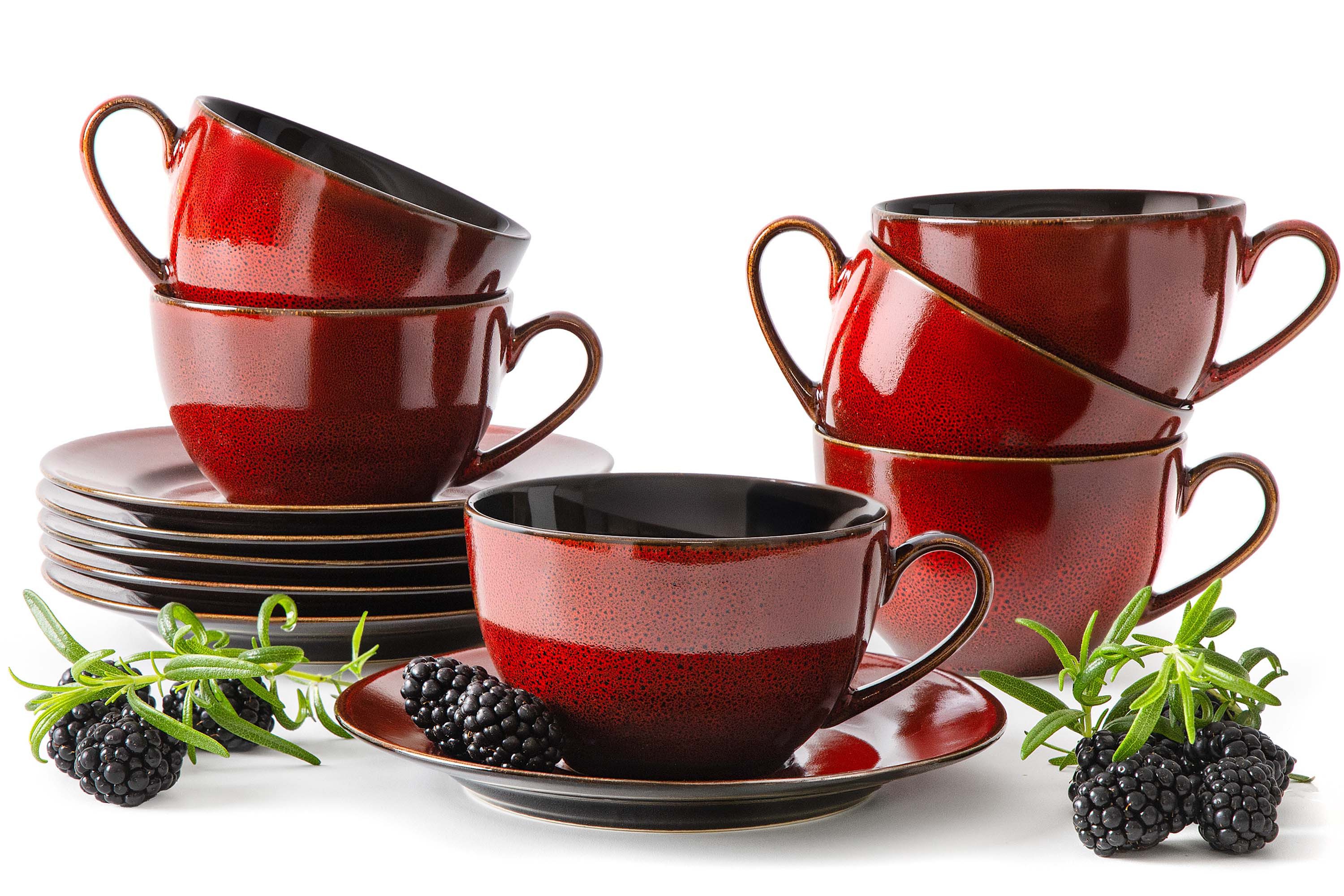 Diese einzigartige Kollektion aus hochwertigem Steingut verbindet Langlebigkeit mit Ästhetik und gewährleistet, dass sie dem täglichen Gebrauch standhält. GAMBIA ist nicht nur schön, sondern auch praktisch - alle Stücke sind spülmaschinen- und mikrowellenfest und eignen sich daher sowohl für den täglichen Gebrauch als auch für besondere Anlässe. Das außergewöhnlich tiefe Rot, das dezent von Schwarz begleitet wird, zieht die Blicke aller auf sich, die diese Produkte zu Gesicht bekommen. Die Kollektion bietet sorgfältig zusammengestellte Sets für jeden Anlass - vom eleganten Tafelservice über das morgendliche Kaffeeservice bis hin zum stimmungsvollen Frühstück.