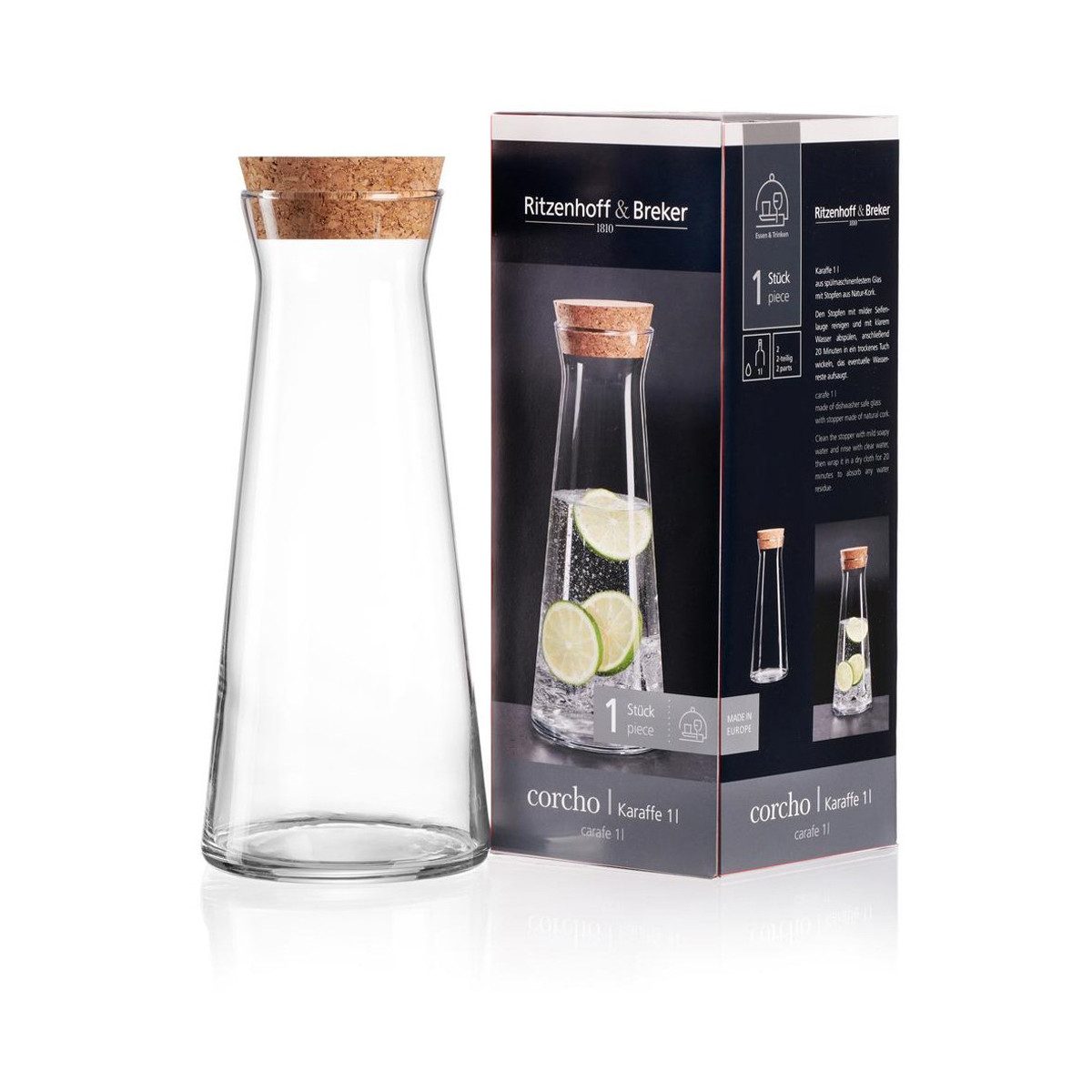 Ritzenhoff und Breker Corcho Karaffe mit Korkstopfen 1000 ml - Glaskaraffe mit Stopfen - Hersteller: Ritzenhoff und Breker GmbH & Co. KG, Industriestraße 21, 33014 Bad Driburg 1er Pack