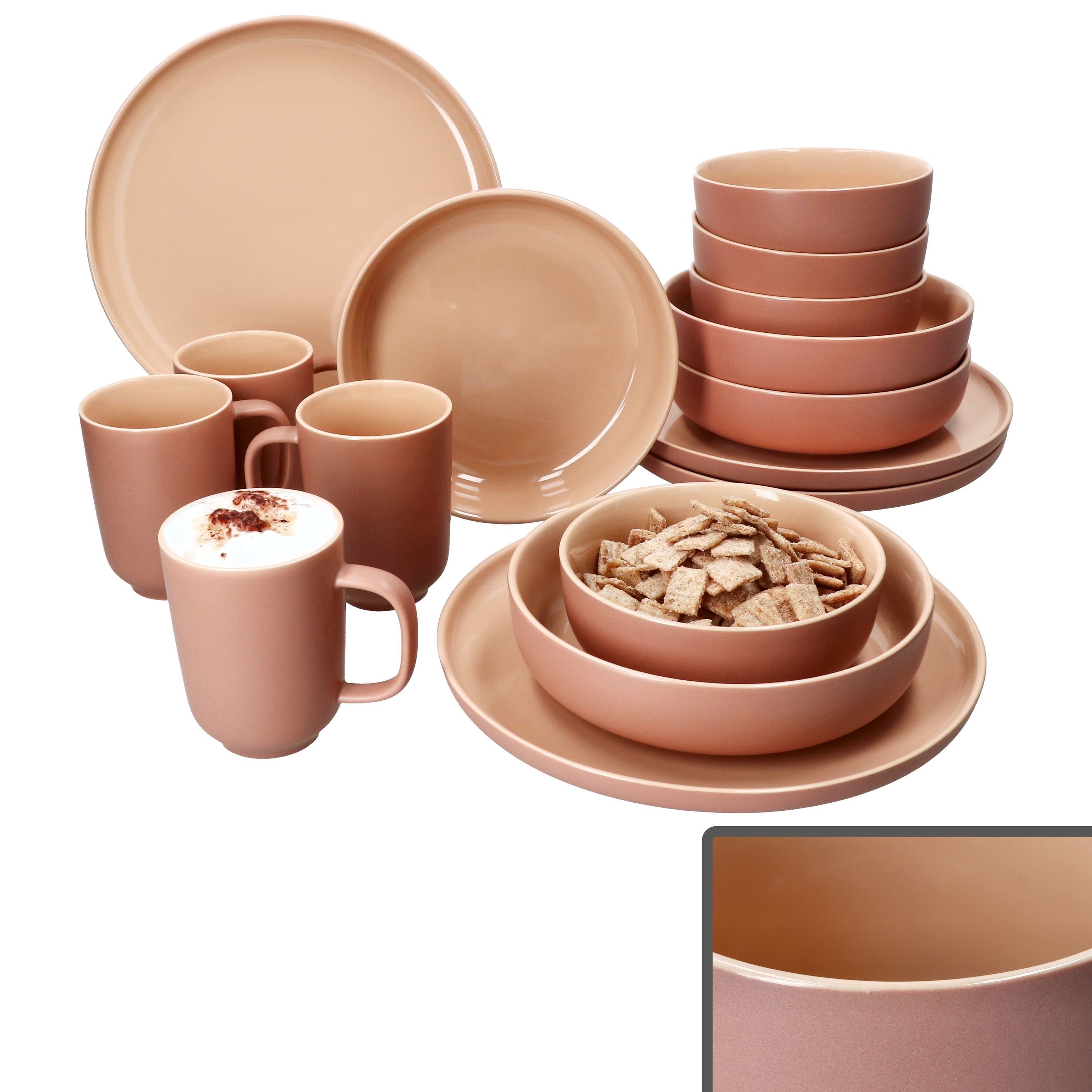 Genießen Sie das puristische rosafarbene 16-teilige Kombiservice Jasper und sorgen für Stil auf Ihrem Tisch mit diesem aufeinander abgestimmten Set.