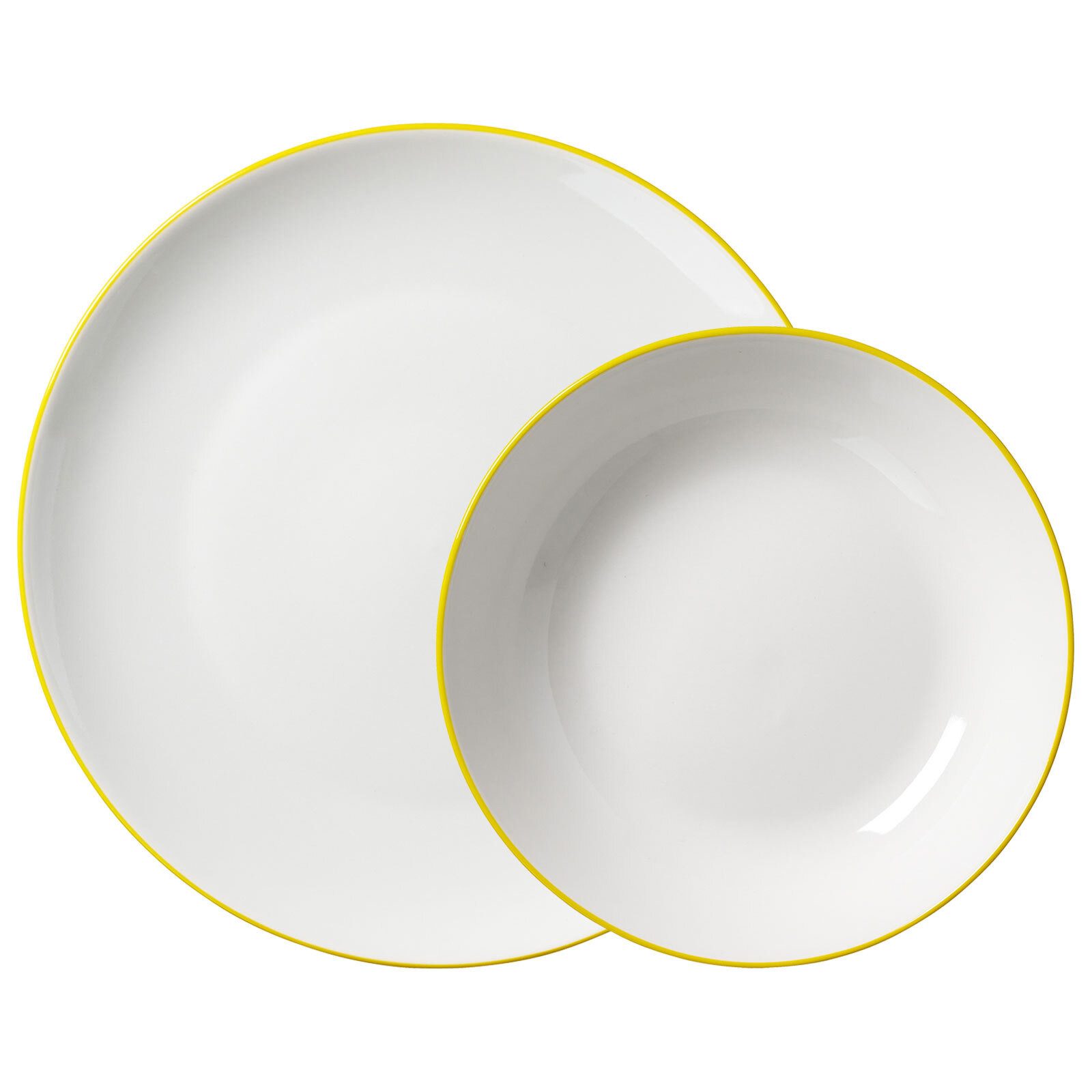 Eine Prise Farbe, bitte ! Mit adela wird es keinem zu bunt, da die Geschirrteile lediglich mit einem schmalen Farbband an ihren Kanten versehen sind. Dieses betont ganz subtil die äußeren Konturen der schlichten Coupeform und lässt Speisen und Getränke ein bisschen wie eingerahmt wirken. Tipp: Wer es etwas farbenfroher mag, stellt sich aus den verfügbaren adela Farben einfach ein lässiges Mix & Match zusammen.