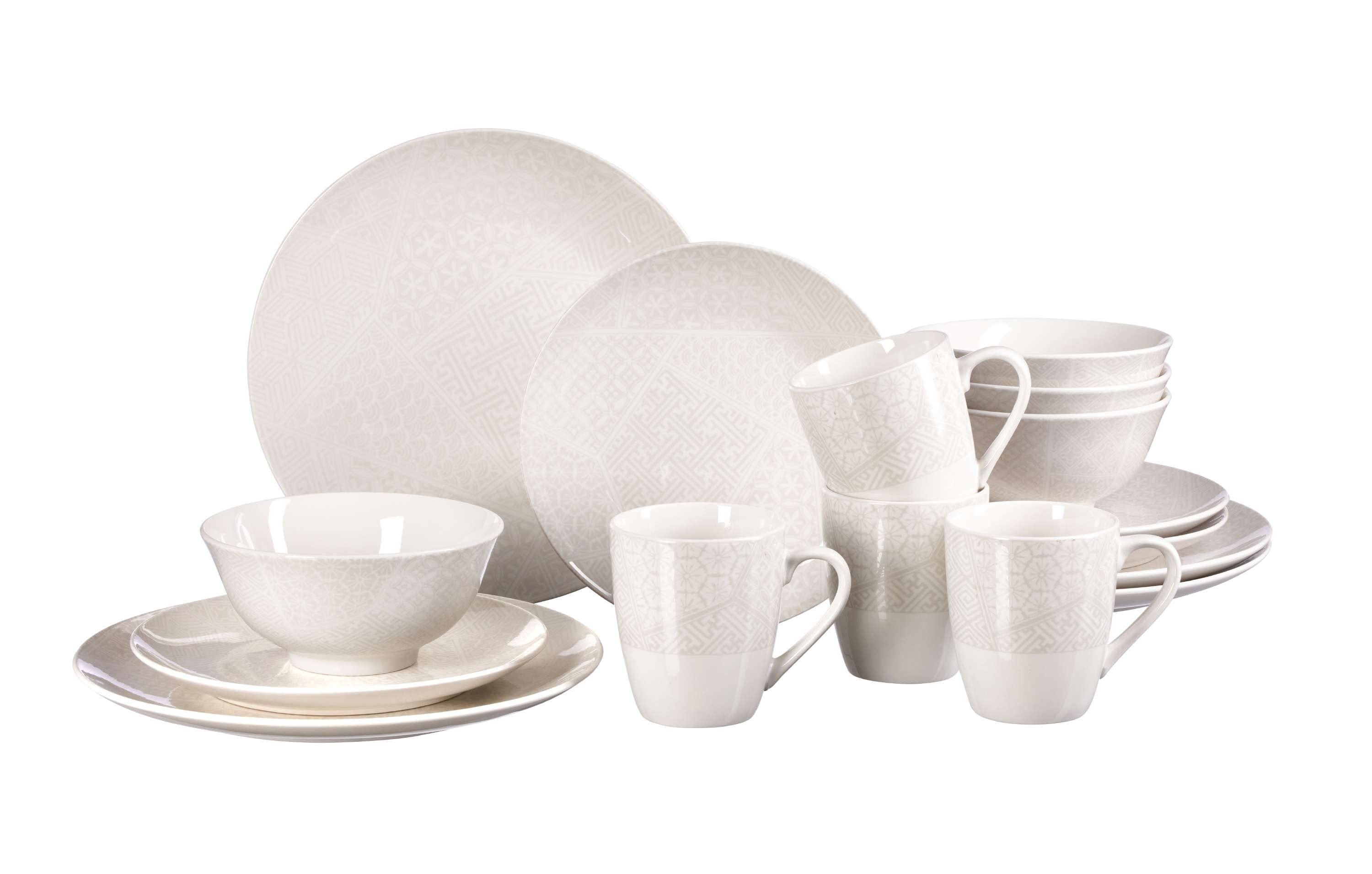 Das Set ist für bis zu 4 Personen und besteht aus 4 Kaffeebechern 350 ml, 4 Müsli-/ Suppenschalen Ø 15.5 cm , 4 Frühstückstellern Ø 21.5 cm und 4 Speisetellern Ø 26.5 cm.