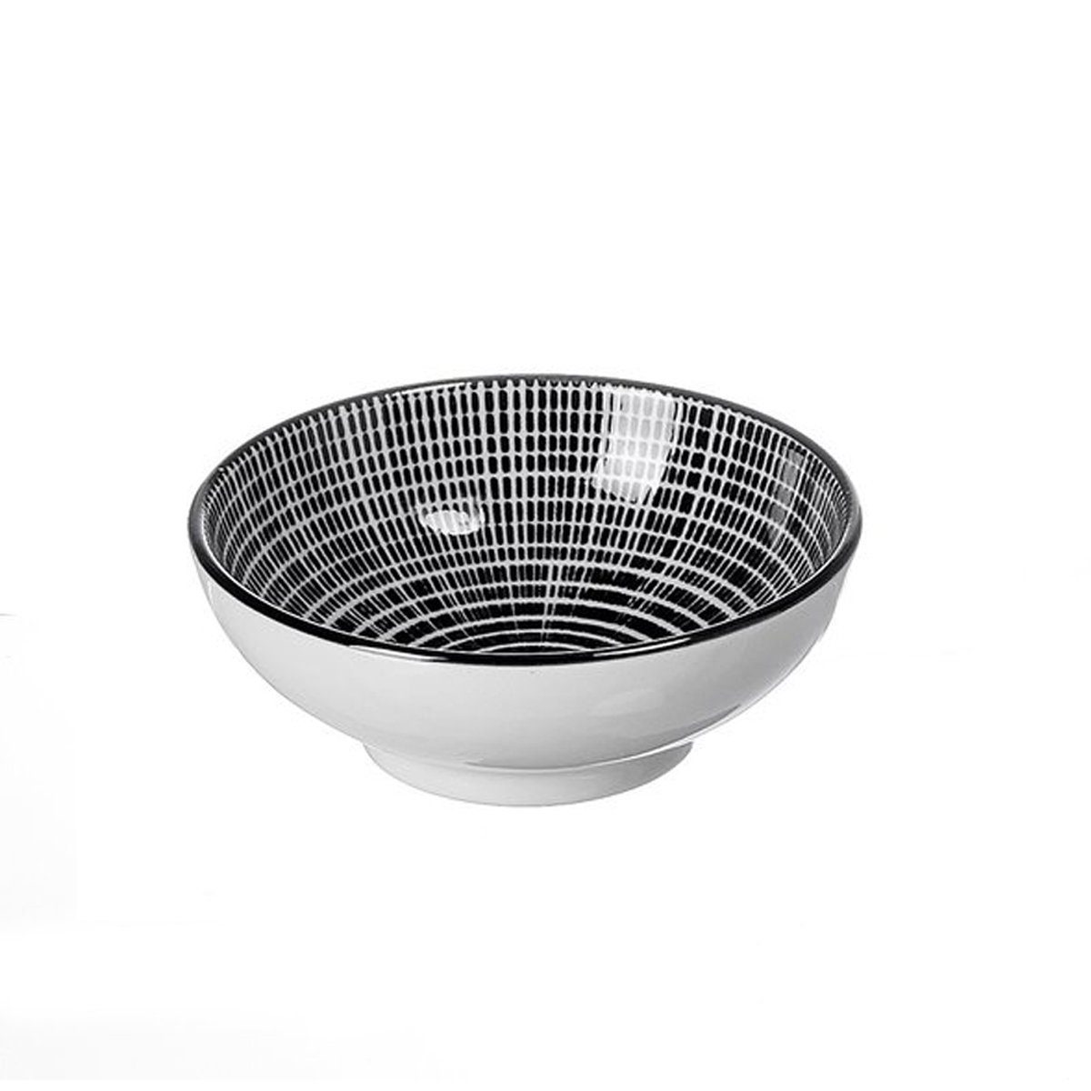 Ein interessanter Blickfang! Das Geschirr "Takeo Stripes" trumpft mit einem auffälligen Strich-Muster in schwarz und weiß auf. Dieses gewagte Design unterstreicht die sonst klassische und schlichte Form des robusten Porzellans.