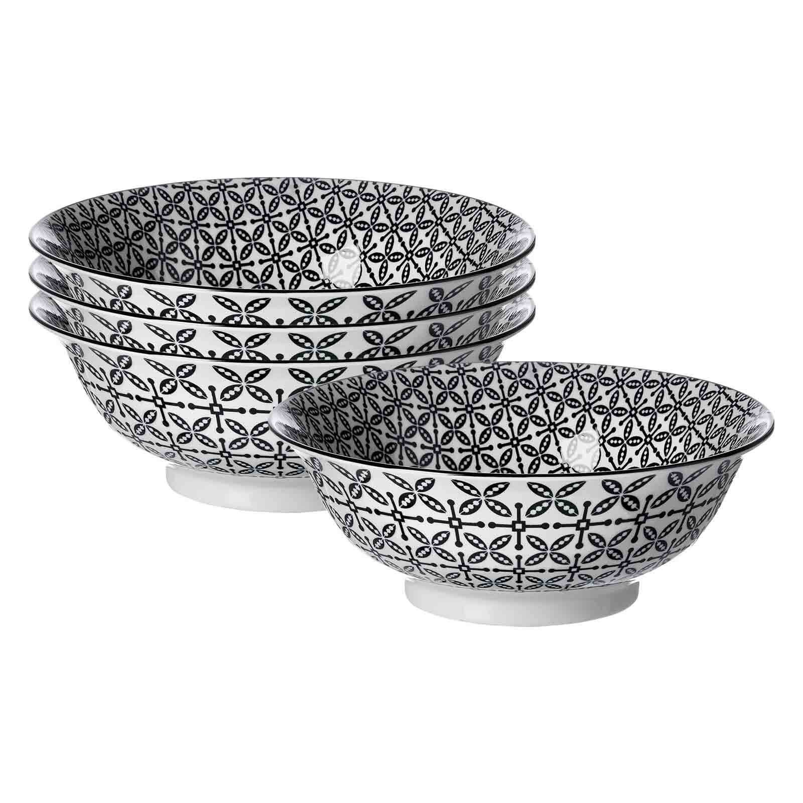 Artikeldetails: Durchmesser: ca. ø 21 cm Höhe: ca. 8 cm Material: Porzellan Merkmal: Spülmaschinengeeignet Farbe: schwarz-weiß Lieferumfang: 4x Servierschale