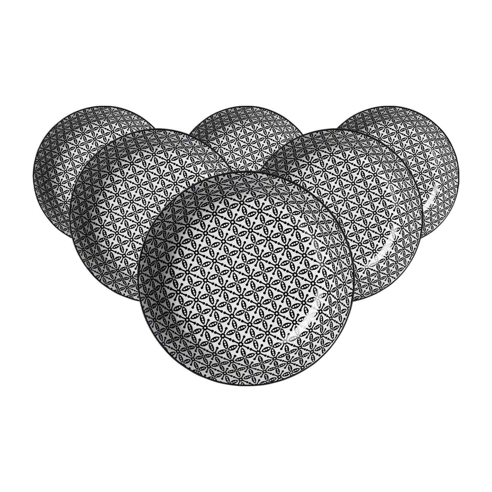 Artikeldetails: Durchmesser: ca. ø 20,5 cm Höhe: ca. 5 cm Material: Porzellan Merkmal: Spülmaschinengeeignet Farbe: schwarz-weiß Lieferumfang: 6x Suppenteller
