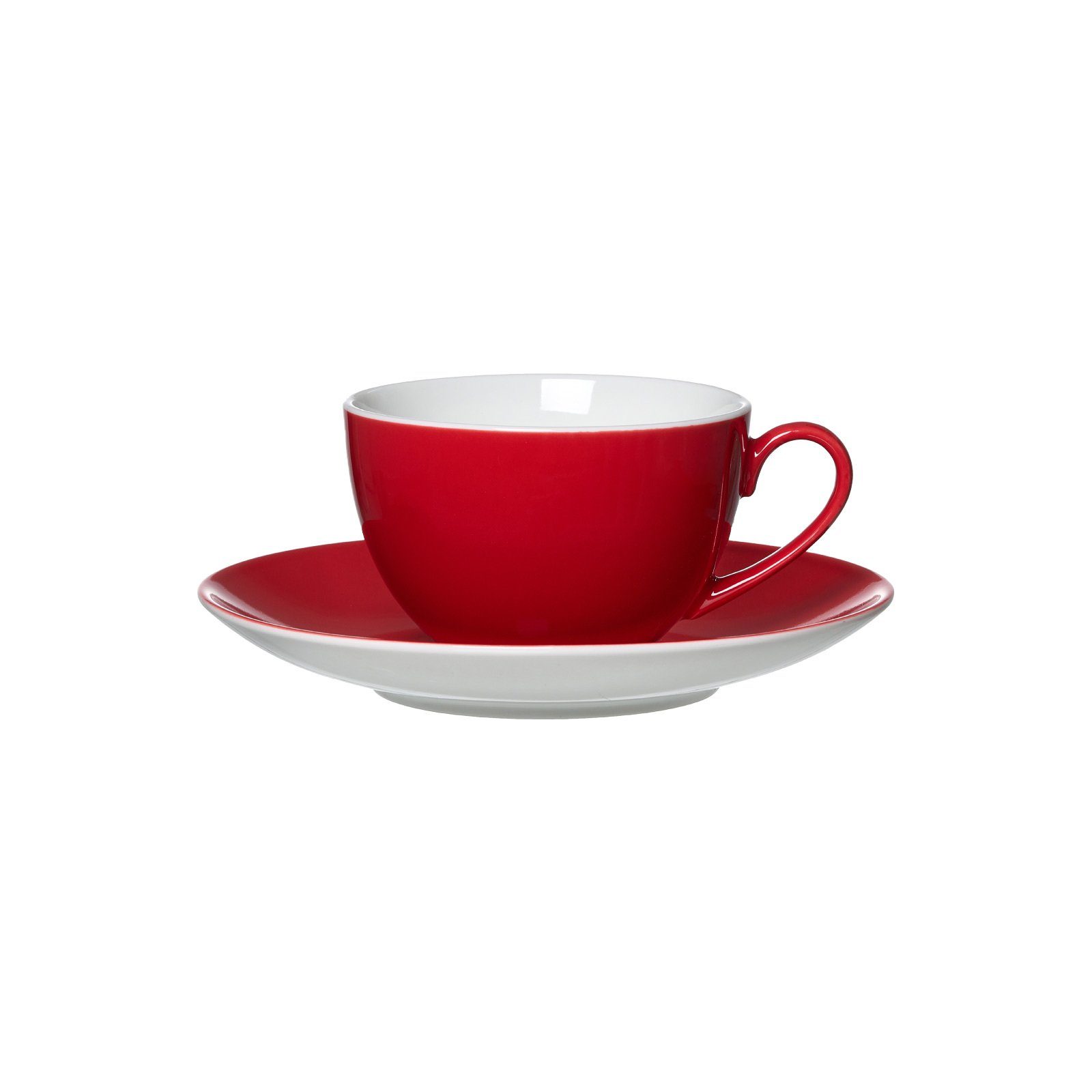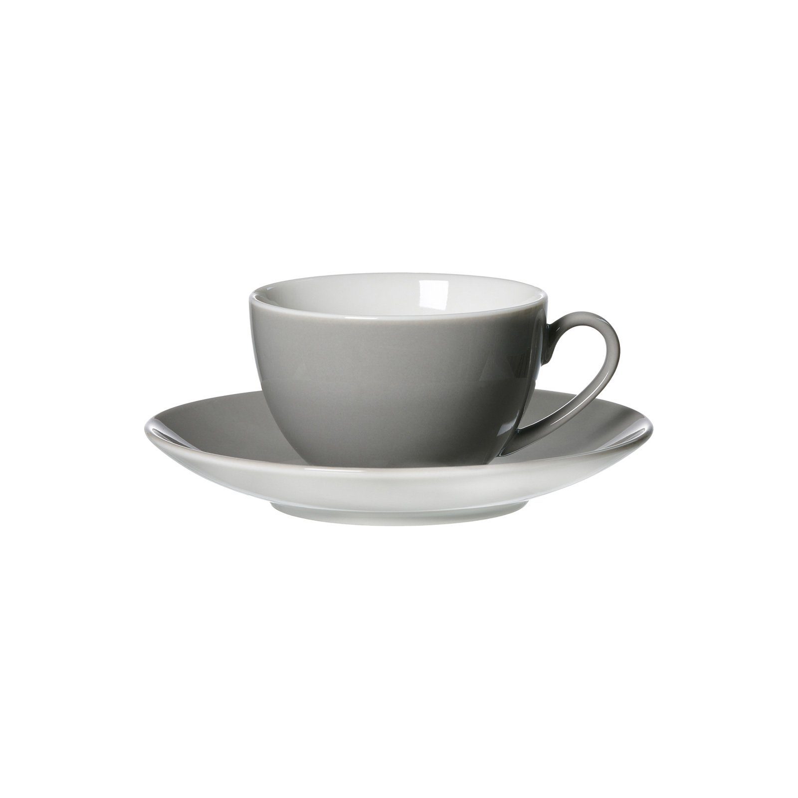 „Doppio“ ist das Geschirr für alle Fälle: die Serie überzeugt mit einer zeitlos-schlichten Formensprache und zahlreichen, attraktiven Farbvarianten für jeden Geschmack. Frei nach dem Motto „Mix it!“ lassen sich zwei oder mehrere Farben je nach Stimmung und Anlass erstklassig kombinieren. Die sogenannten Nichtfarben beispielsweise bieten ein dezentes Ambiente, die bunten Farben sind echte Muntermacher mit Gute-Laune-Versprechen. Tolle Akzente mit Pep verspricht ein Mix aus diesen beiden Farbgruppen. „Doppio“ lässt der Kreativität freien Lauf und sorgt zu jedem Anlass für das richtige Ambiente. Dieses 2-teilige Set stellt eine farbenfrohe und harmonische Kombination aus Kaffeetasse und Kaffeeuntertasse dar. Das trendige Set sorgt für ein wahres Highlight am Esszimmertisch.