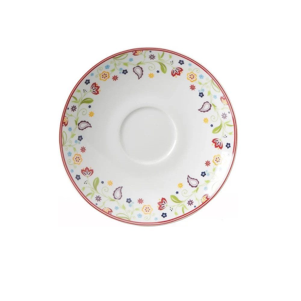 Die Ritzenhoff & Breker Shanti Kaffee-Untertasse ist die perfekte Ergänzung zu Ihrer Shanti Kaffee-Obere und bringt farbenfrohe Eleganz und exotischen Charme auf Ihre Kaffeetafel. Mit ihrem orientalisch inspirierten Design und den leuchtenden Farben sorgt sie für eine fröhliche Atmosphäre bei jeder Kaffeepause. Die kunstvollen Muster verleihen der Untertasse einen besonderen Charakter und machen sie zu einem echten Hingucker. Diese Untertasse ist nicht nur funktional, sondern auch ein stilvolles Accessoire, das Ihre Tischdekoration perfekt abrundet.