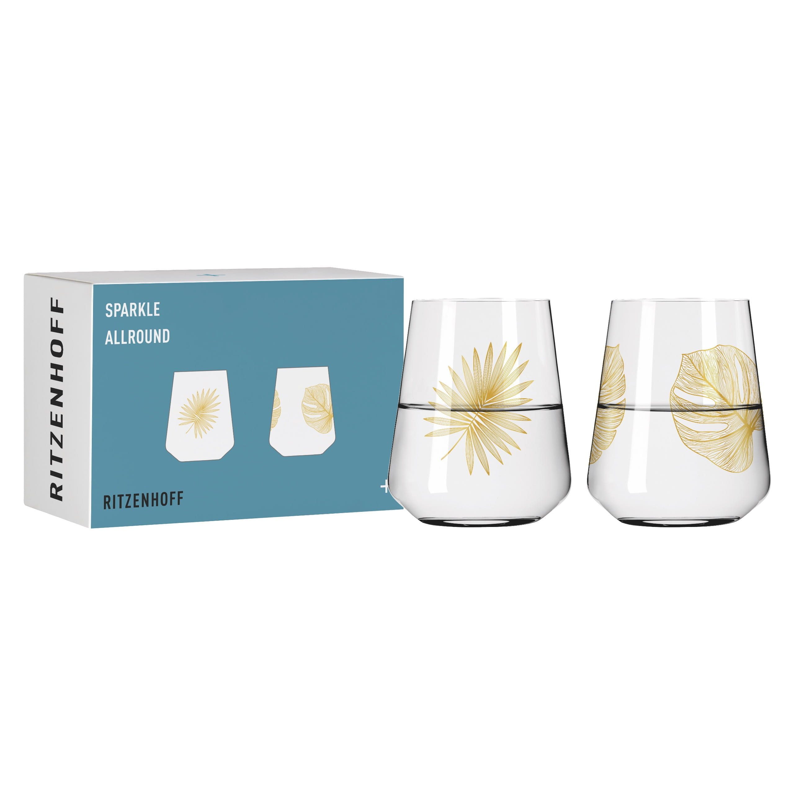 Kräftiges Gold trifft auf filigranes Blattwerk: Das Dekor lädt alle Genießer dazu ein, sich dem kühlenden Drink im Glas hinzugeben und dabei positive Gedanken im Wind sanft fliegen zu lassen.