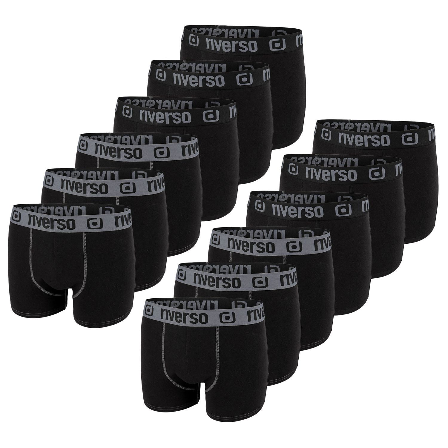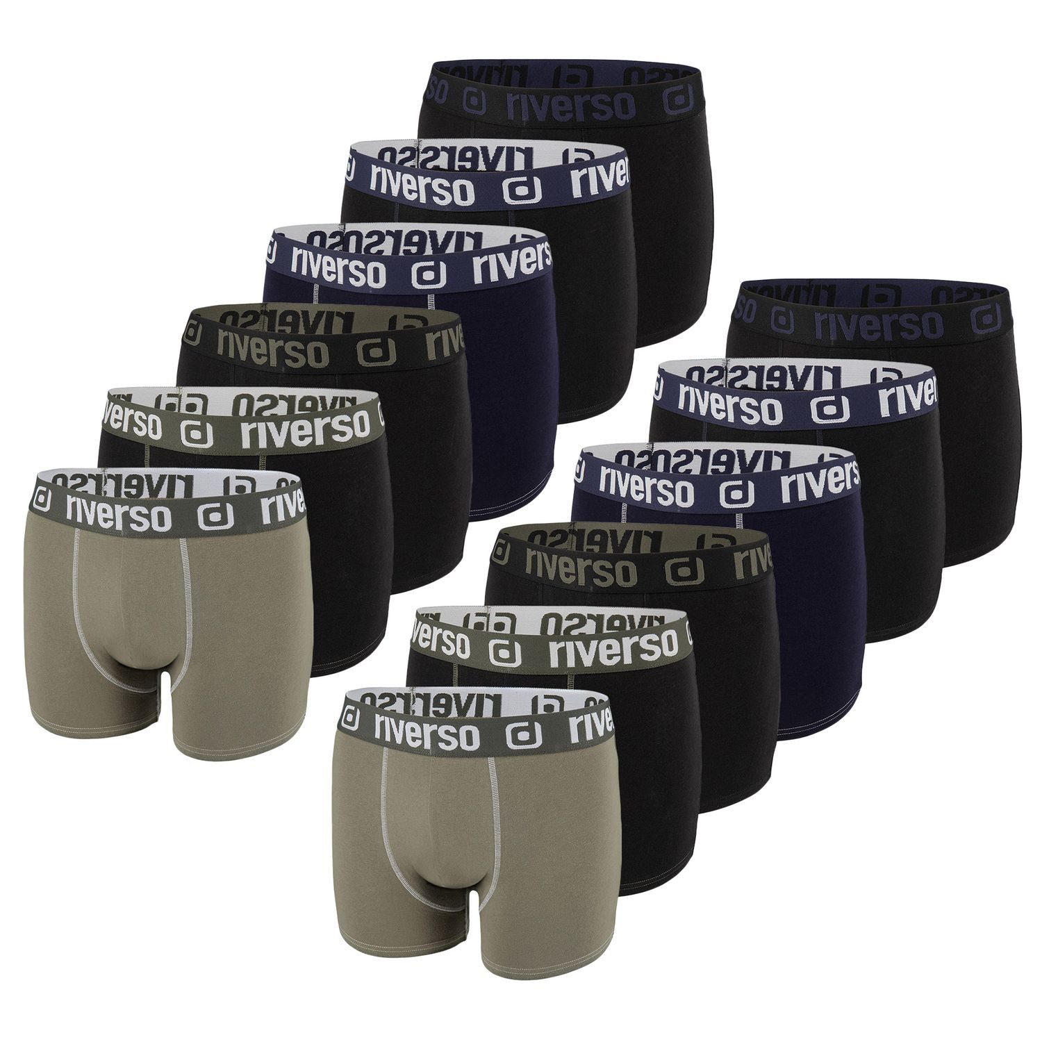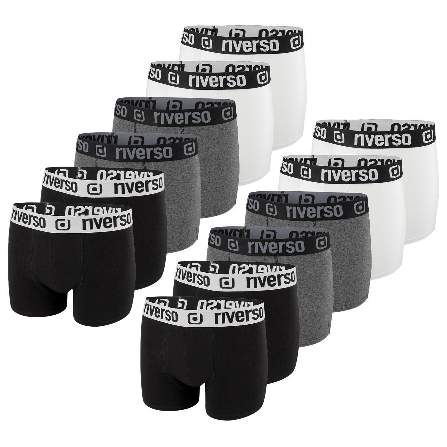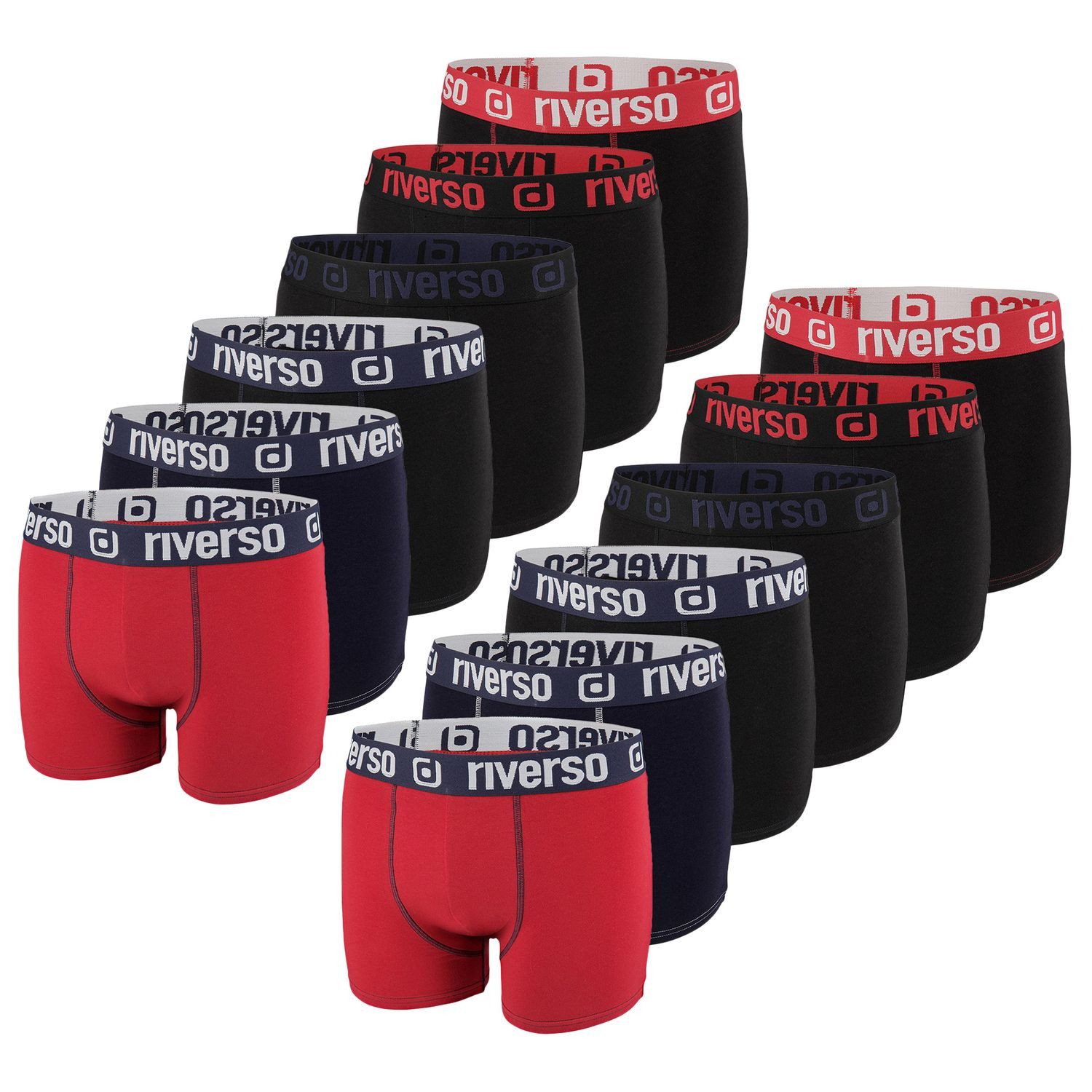 riverso Männer Basic Boxer RIVOle 12er Pack mit einem angenehmen Tragegefühl durch den hohen Baumwollanteil. Der elastische Taillenbund sorgt für maximalen Tragekomfort und auch der Beinausschnitt ist so konzipiert, dass dieser in keiner Weise einschneidet. Es wurde bewusst auf störende Etiketten verzichtet, die Marken- und Pflegehinweise sind innenseitig eingeprägt. Als besonderer Eyecatcher dient der farbige Bund am Hosenbund und die farbigen Nähte.