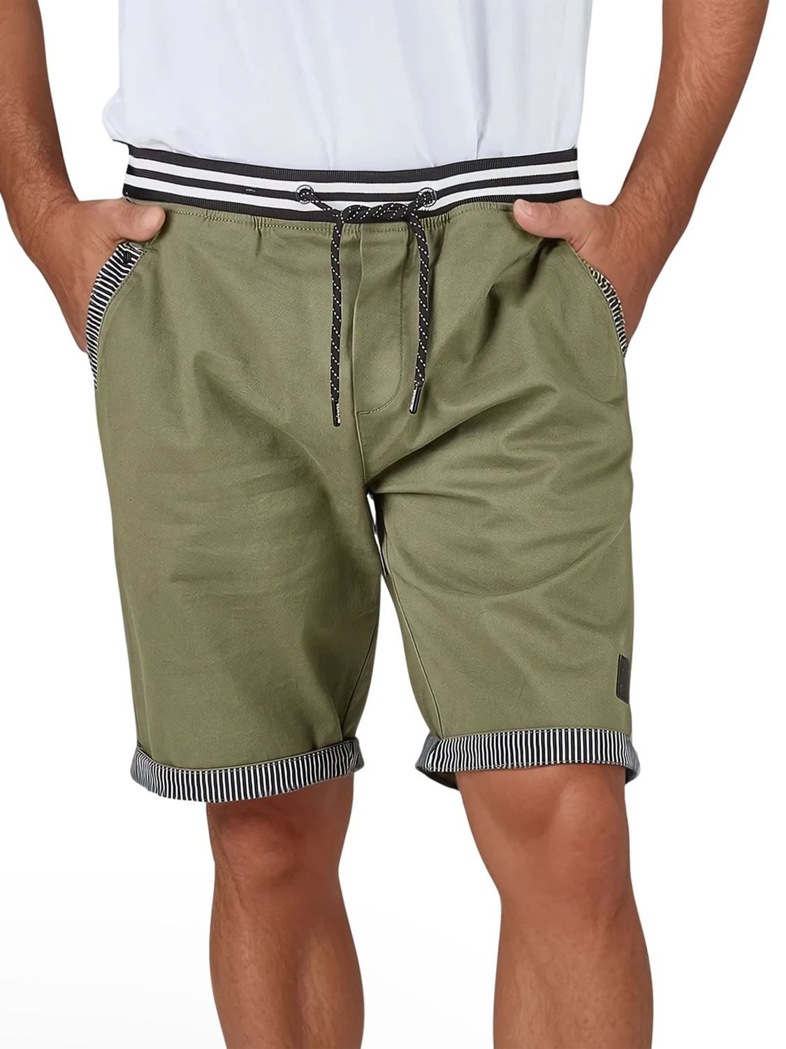 Die riverso Herren Shorts zeichnet sich durch eine Vielzahl praktischer Details aus. Die Hose ist Knielang geschnitten. Neben den beiden Seitentaschen verfügt die Shorts über zwei Gesäßtaschen die mit einem Knopf verschlossen werden. Bei der riverso Herren Bermuda Shorts RIVAngelo sind diese sogar ausgesprochen geräumig gestaltet, sodass neben Schlüssel und Geldbörse selbstverständlich auch das Smartphone in einer der Hosentaschen Platz findet. Darüber hinaus brilliert diese Shorts durch den farblich abgesetzten elastischen Bund mit einem verstellbaren Kordelzug. Auch die Seiten und Gesäßtaschen sowie der Bund am Oberschenkel sind farblich abgesetzt. Hergestellt ist diese Kurze Hose aus 98 % Baumwolle und 2 % Elasthan.