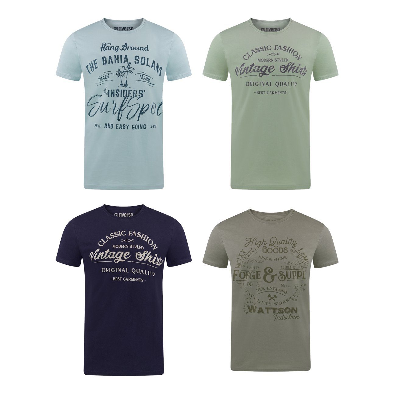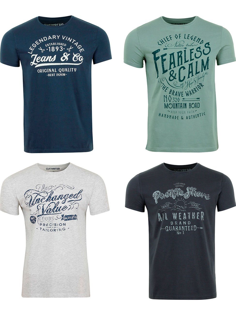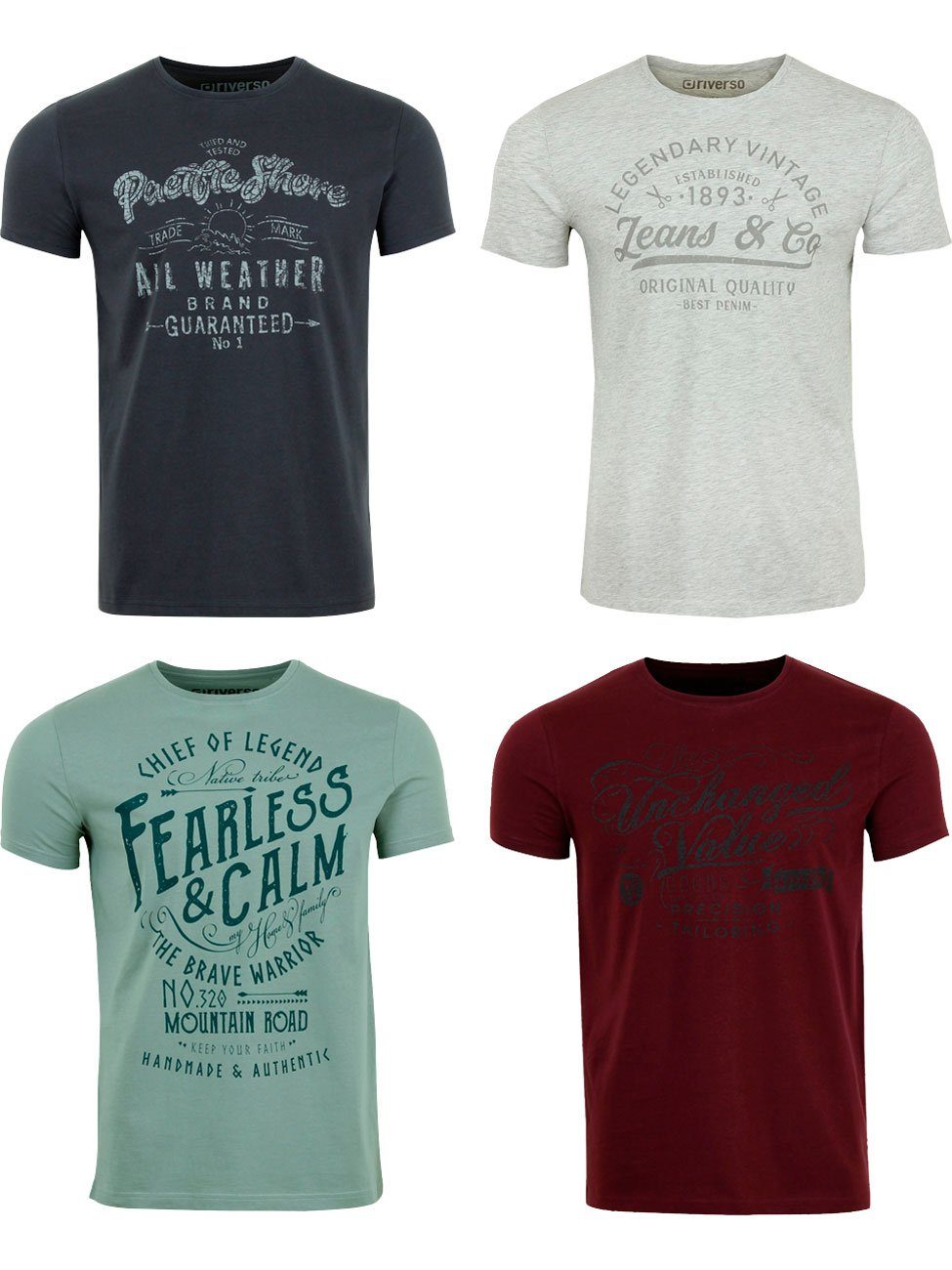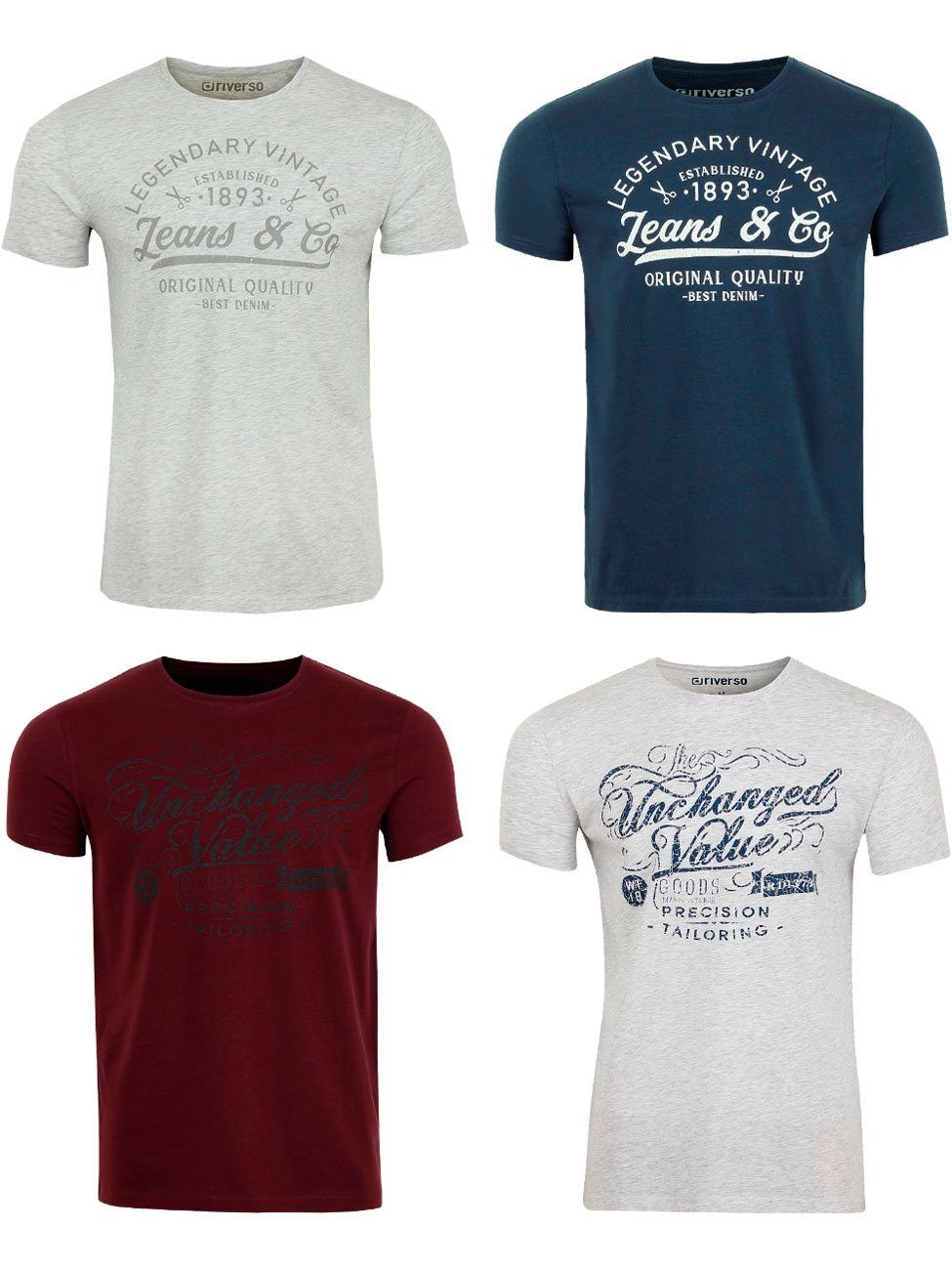 riverso "RIVLeon" Rundhals T-Shirt für viele Gelegenheiten im praktischen 4er Pack