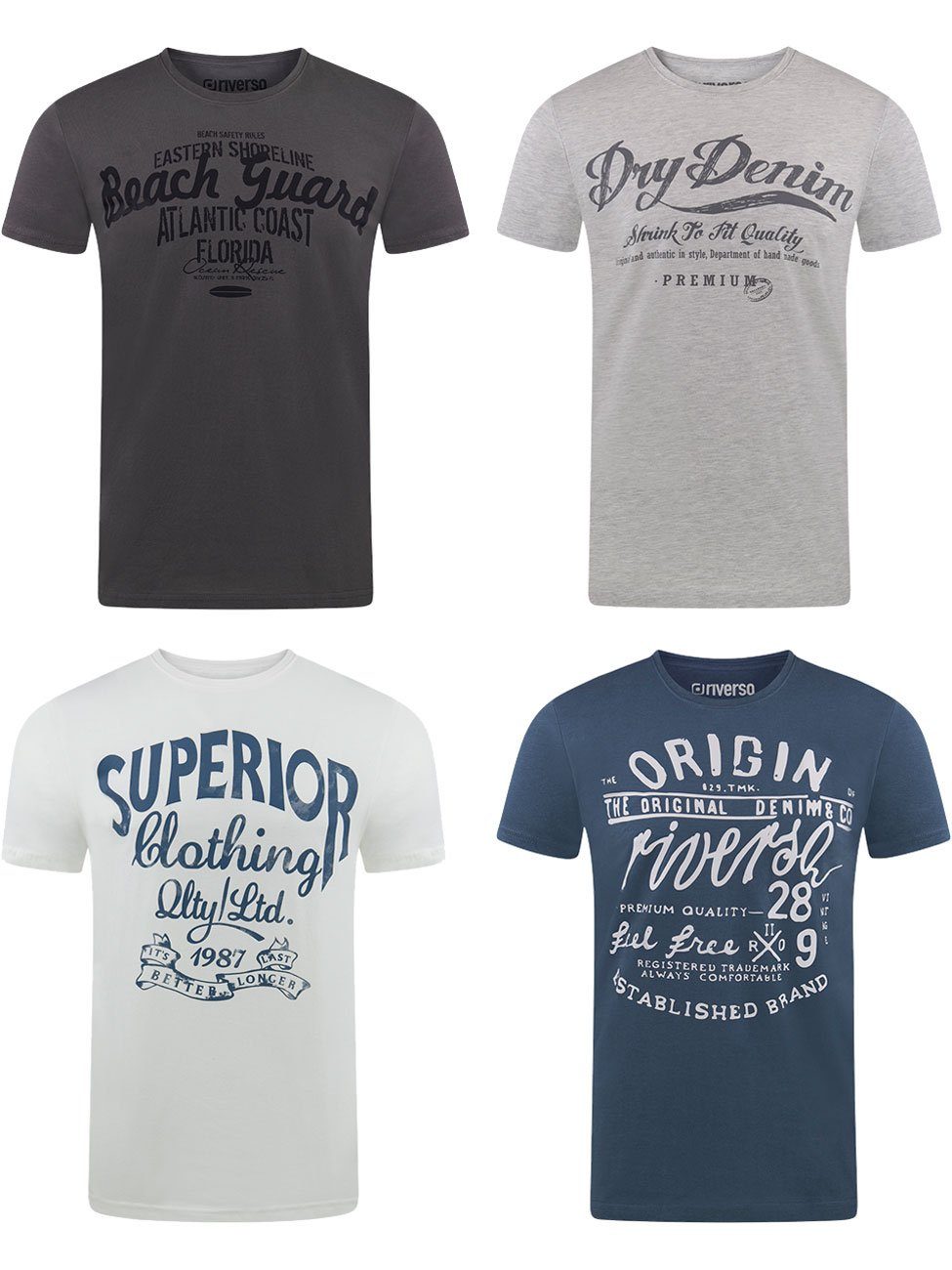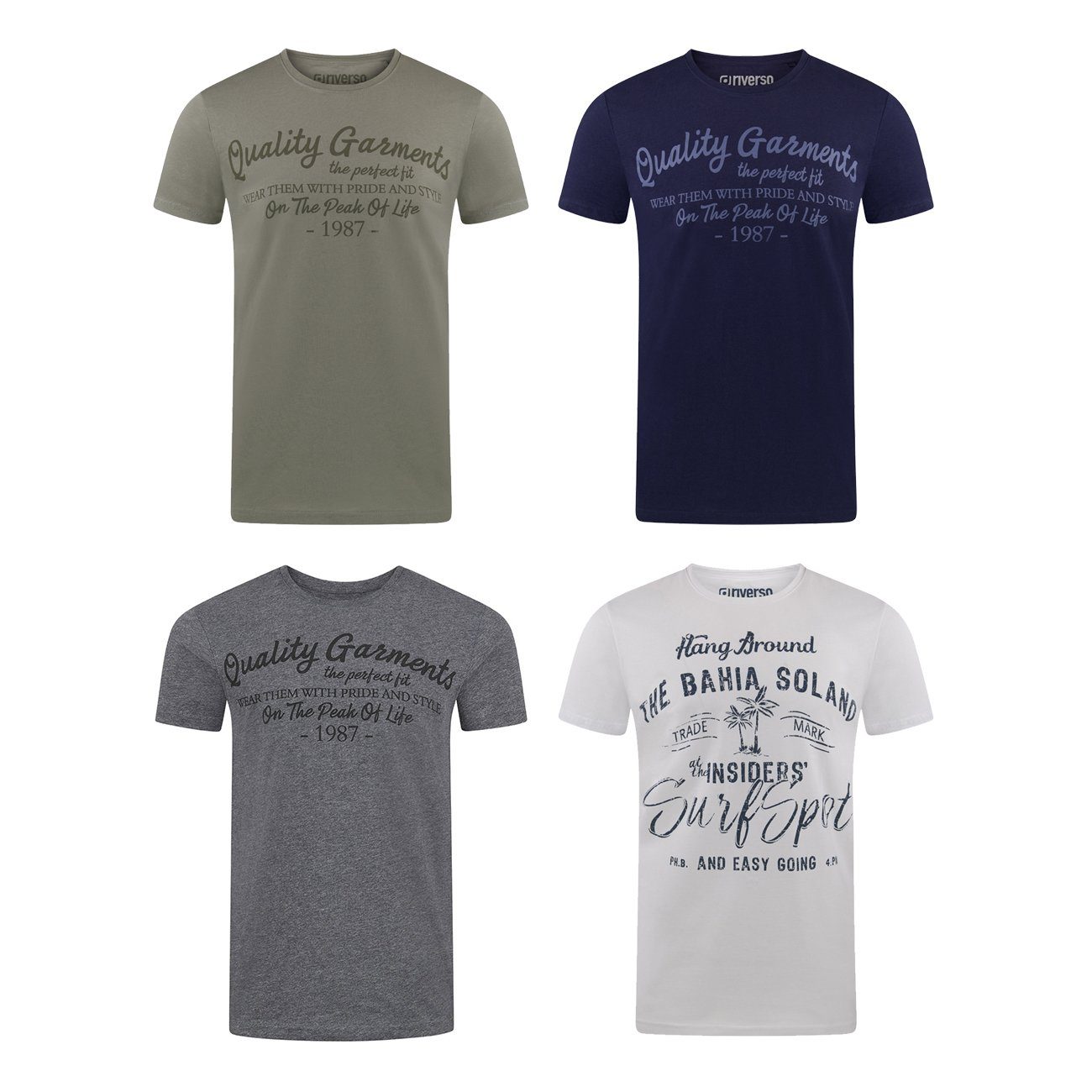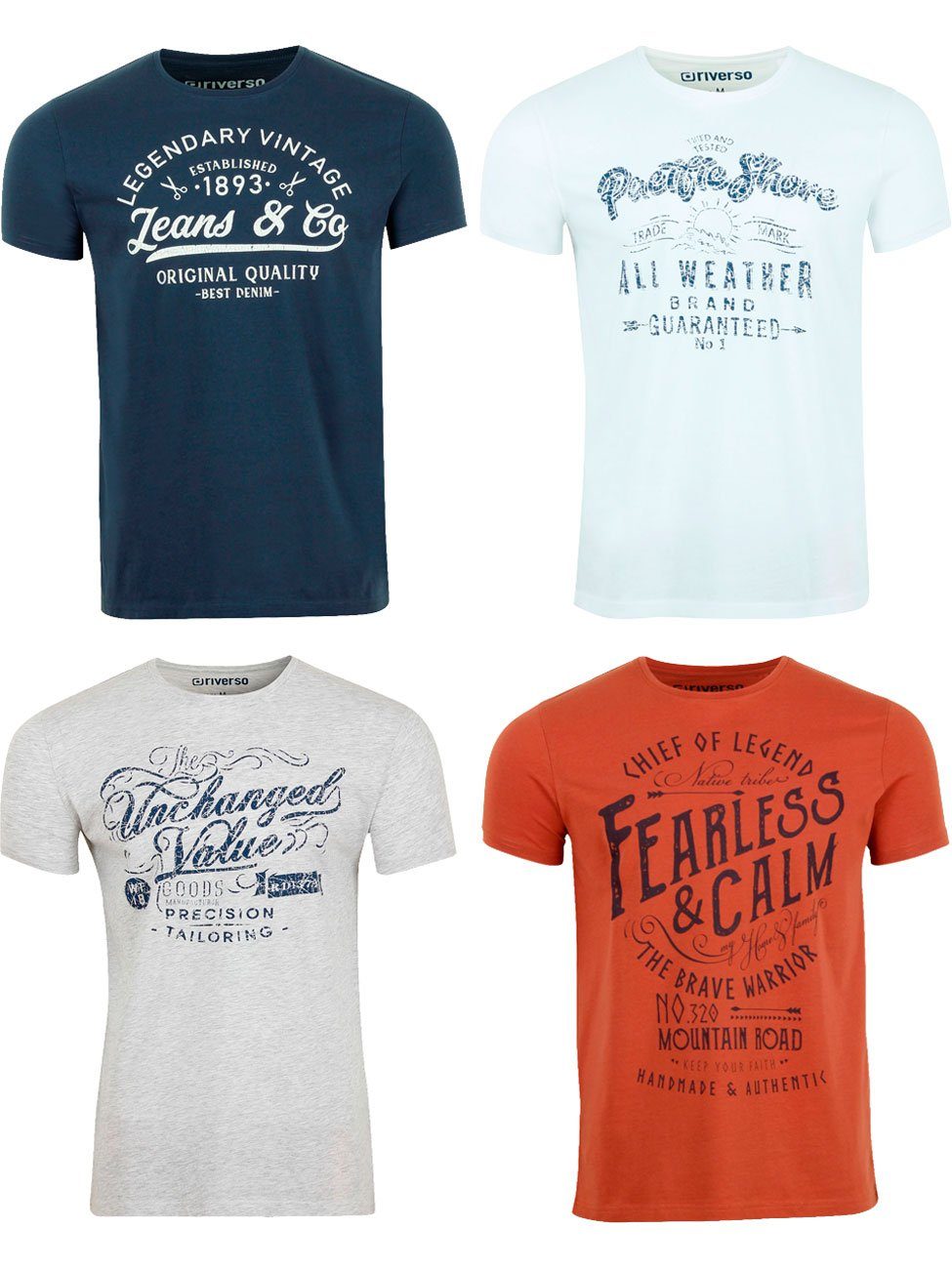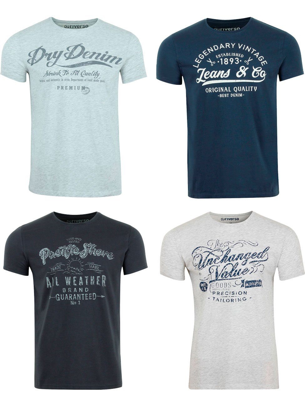 riverso "RIVLeon" Rundhals T-Shirt für viele Gelegenheiten im praktischen 4er Pack