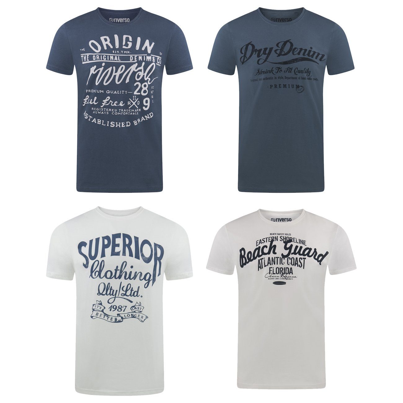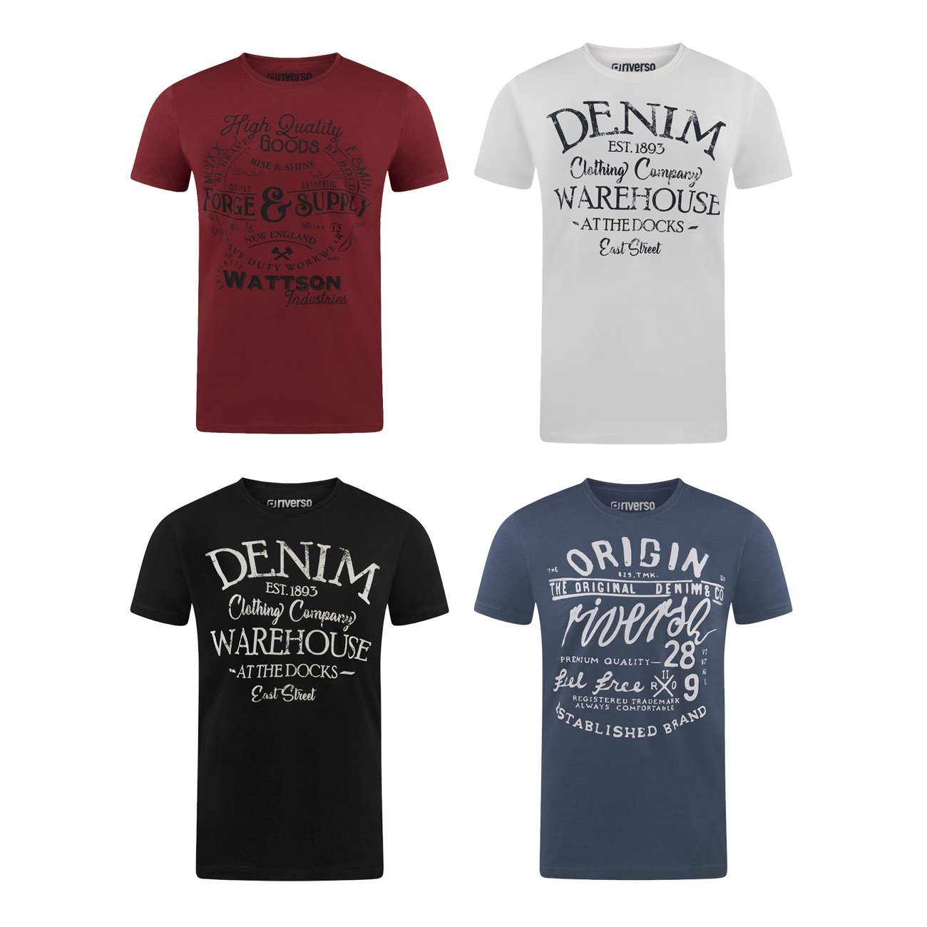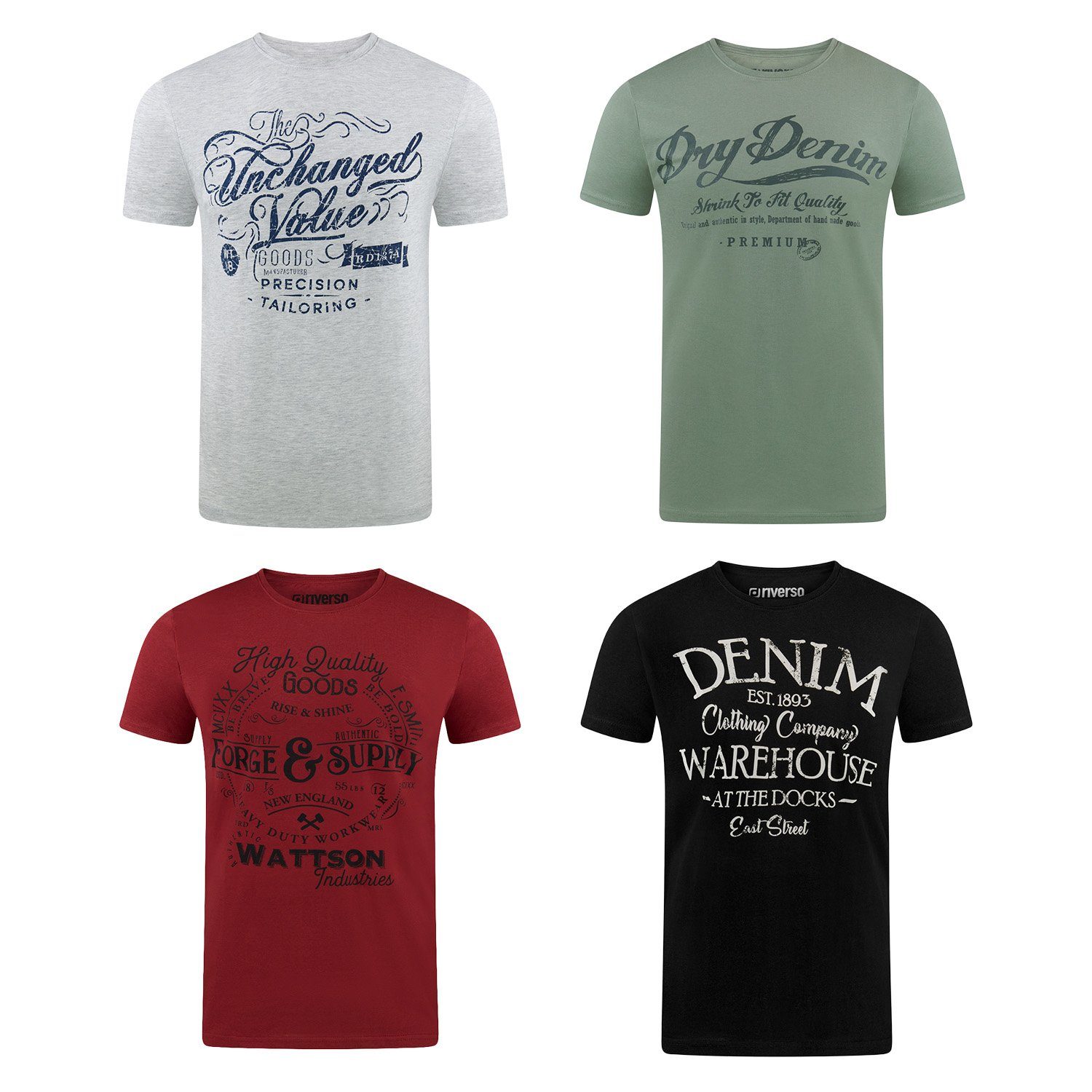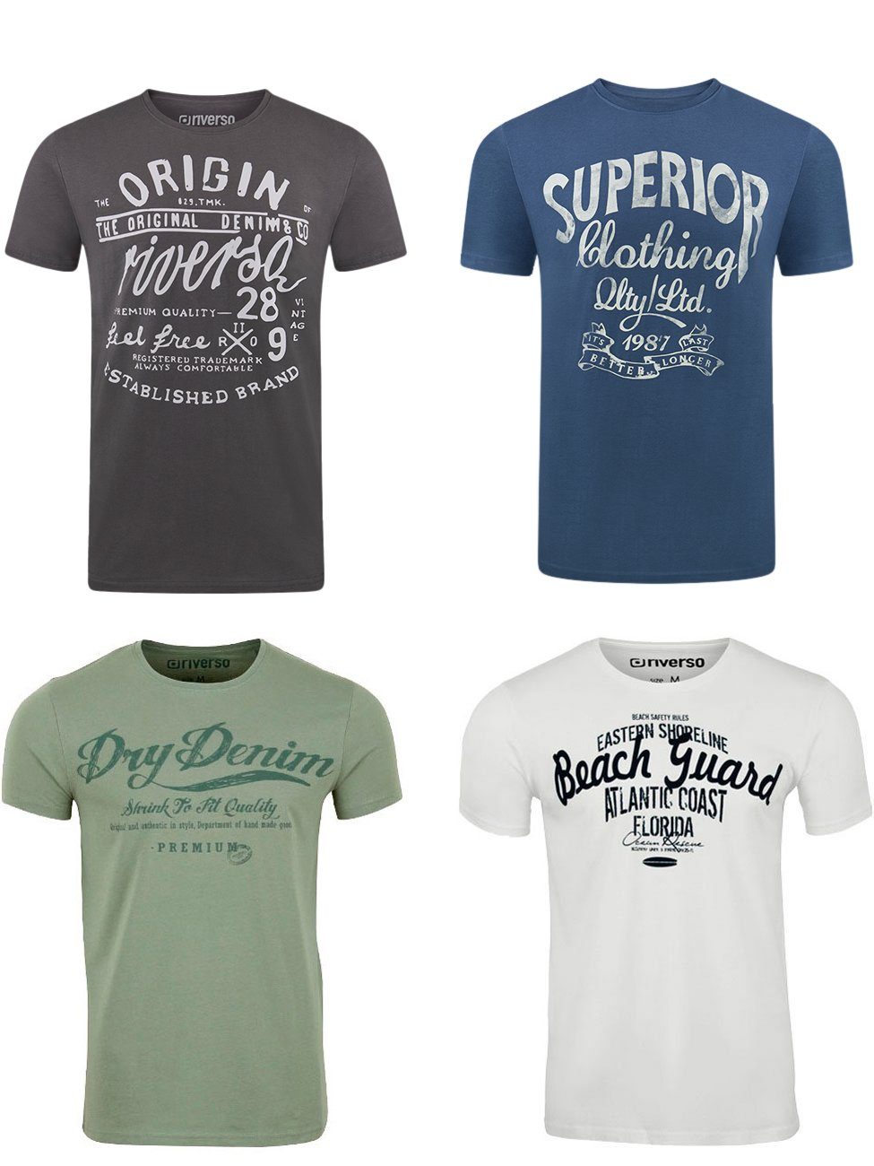 riverso "RIVLeon" Rundhals T-Shirt für viele Gelegenheiten im praktischen 4er Pack
