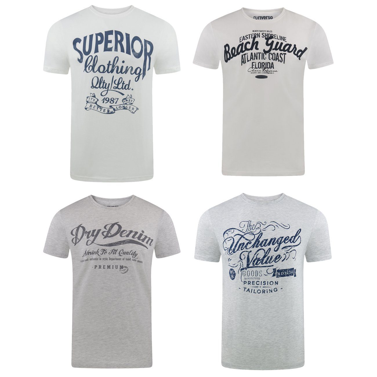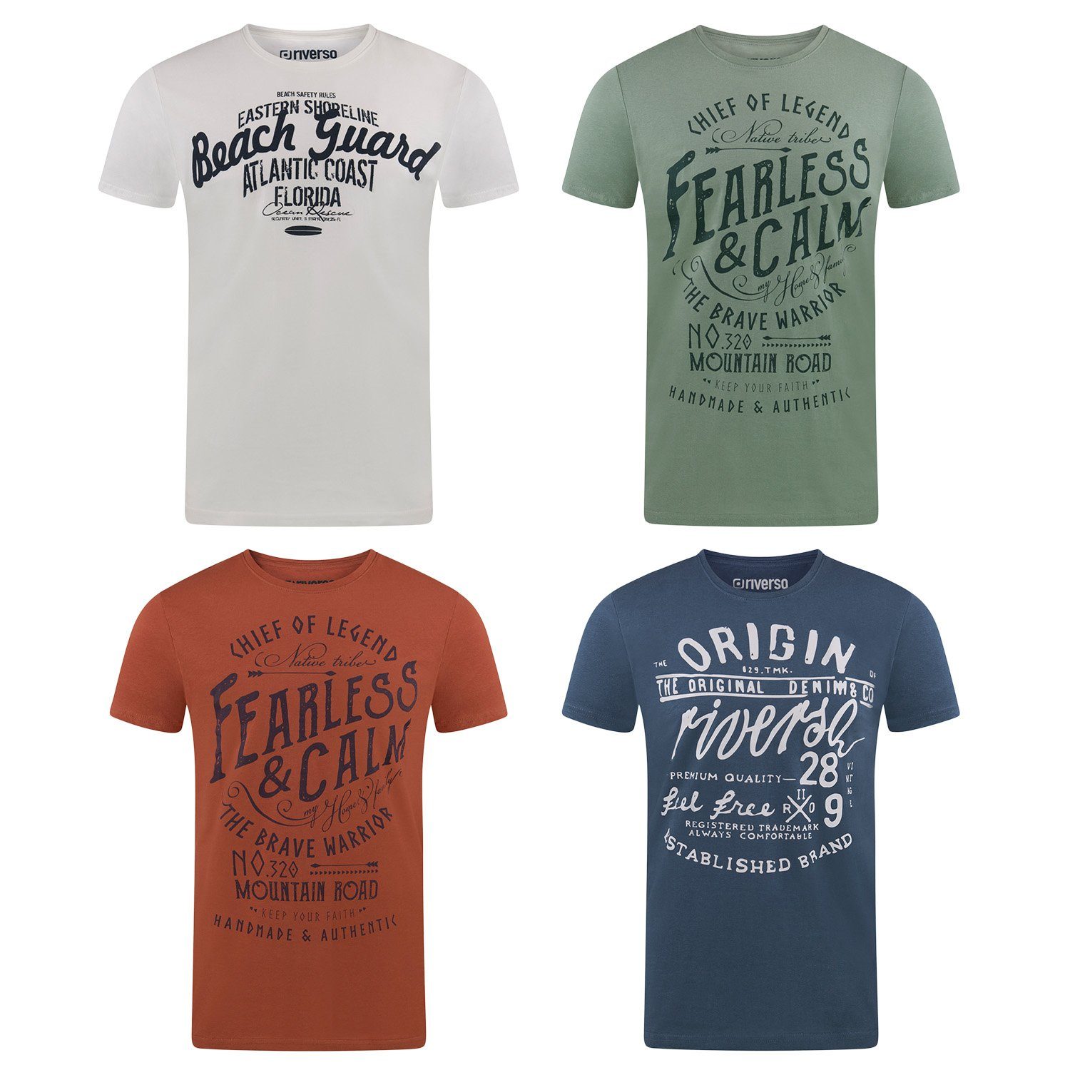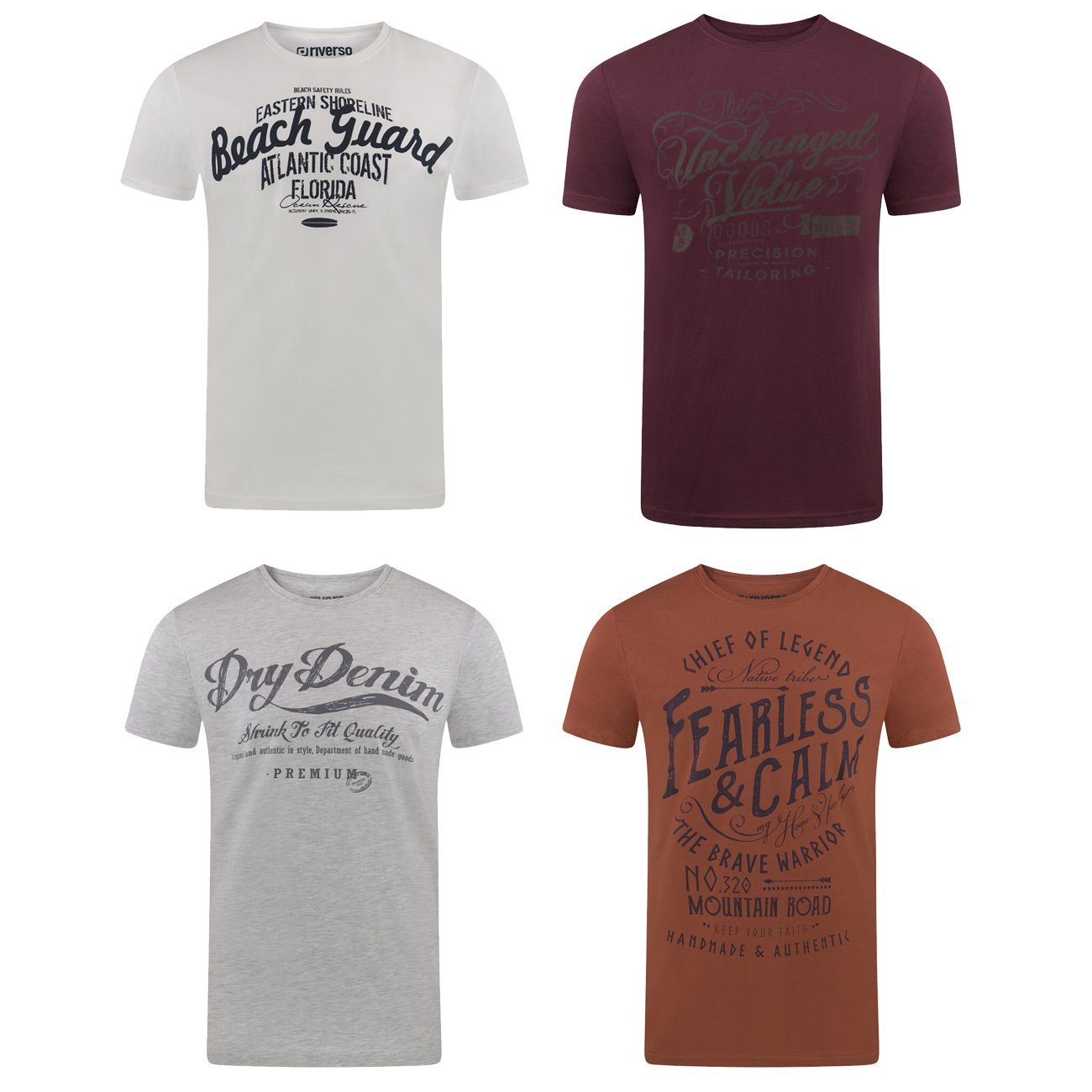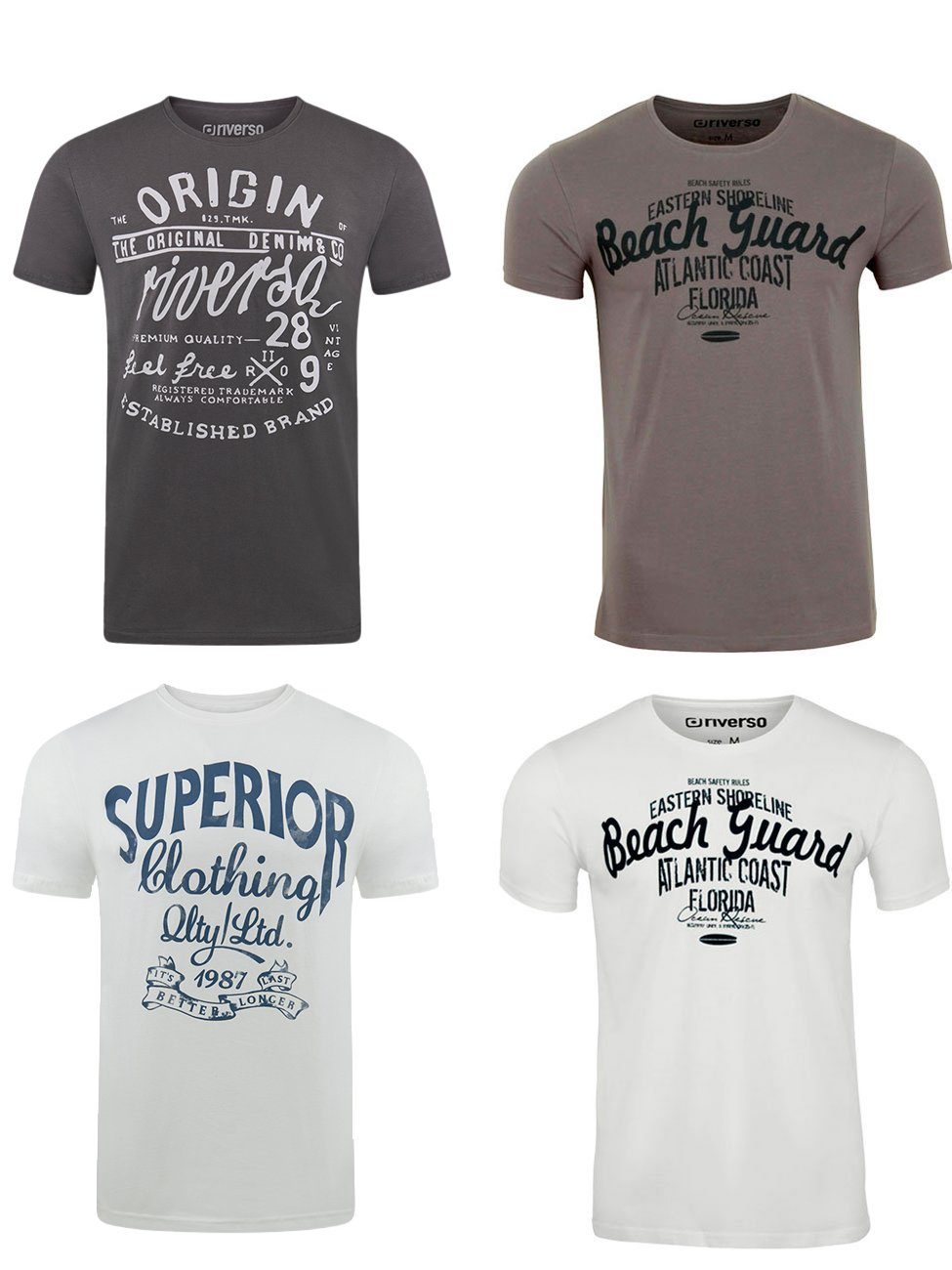 riverso "RIVLeon" Rundhals T-Shirt für viele Gelegenheiten im praktischen 4er Pack