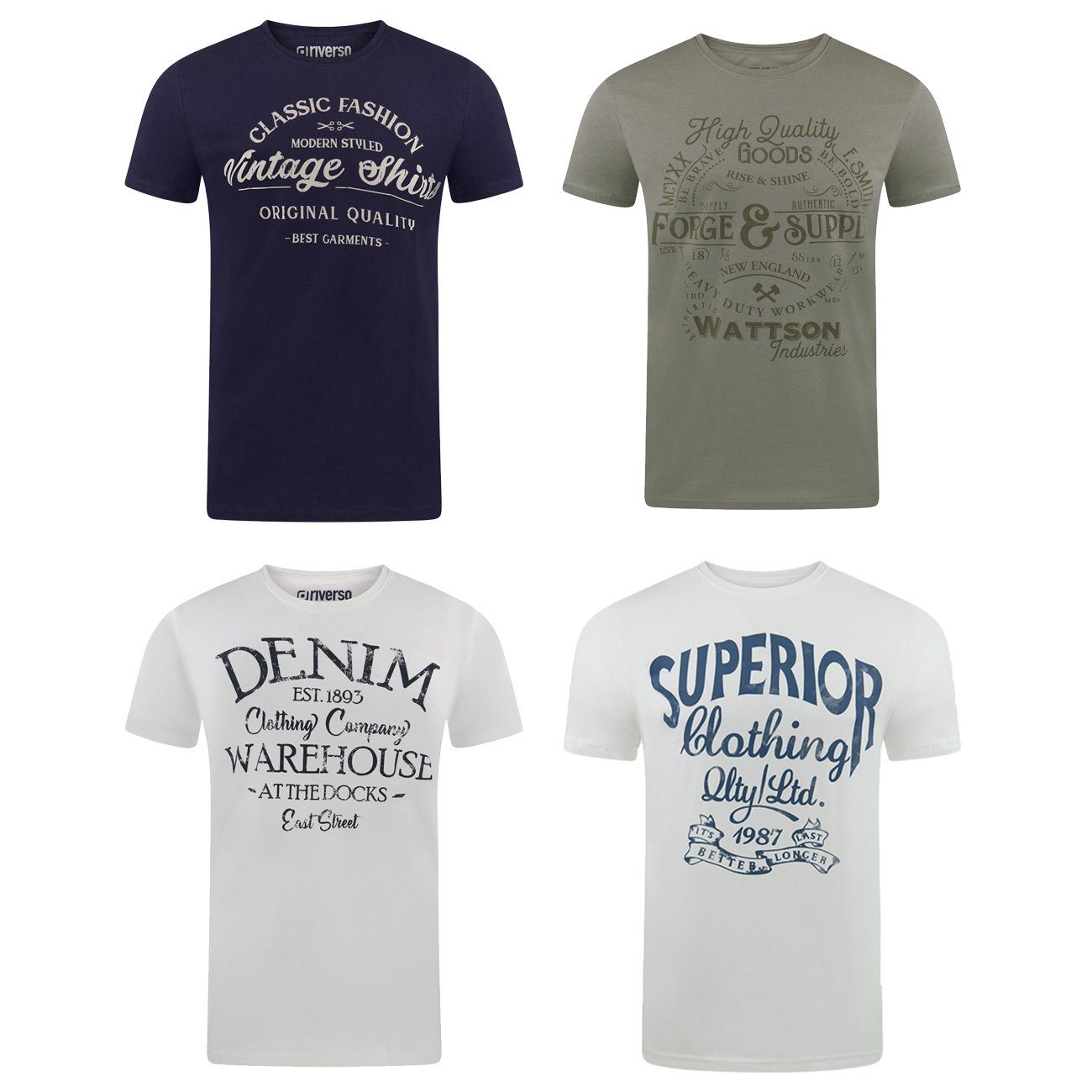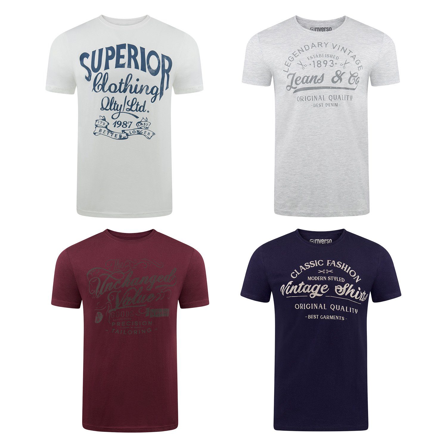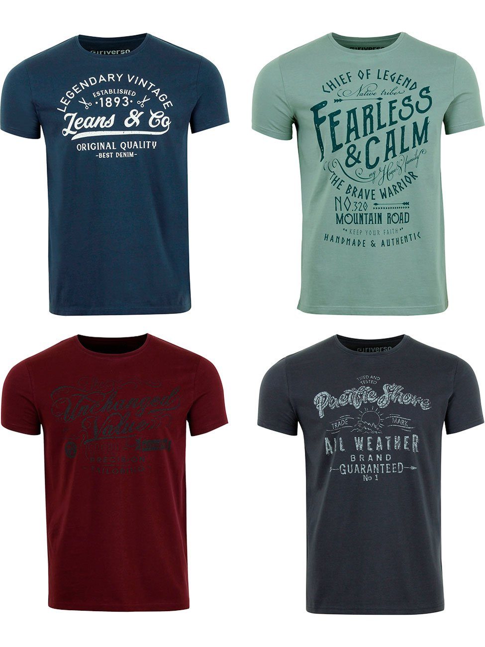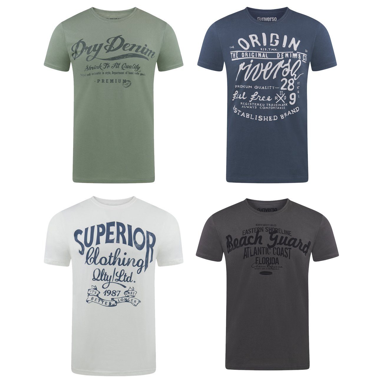 riverso "RIVLeon" Rundhals T-Shirt für viele Gelegenheiten im praktischen 4er Pack