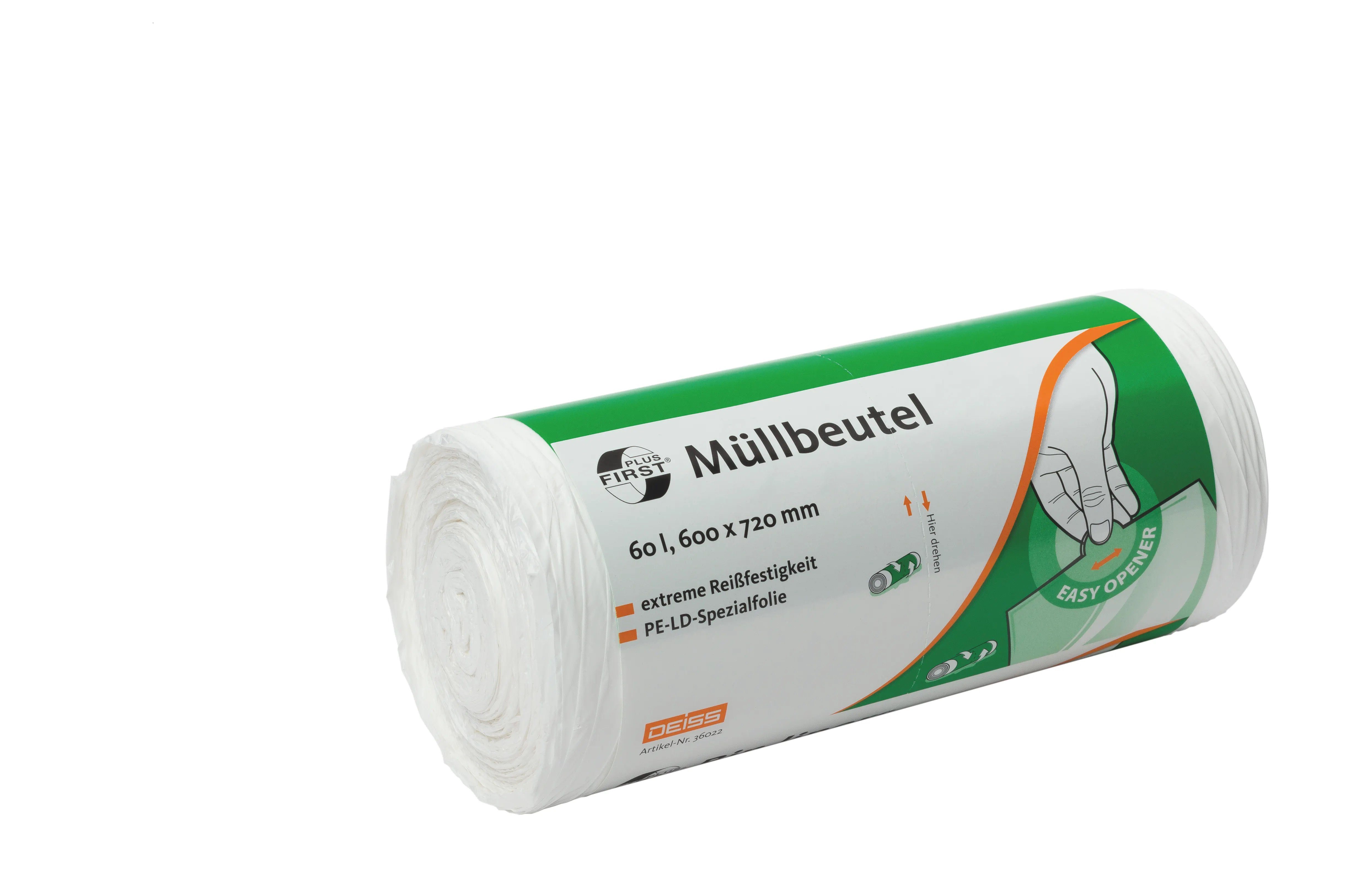 Original Deiss First - Müllbeutel 60l weiß (50 Stück/Rolle), Artikelnummer: 36022 mit der EAN: 4001553360227 von deiss, langlebig und robust Original Deiss First - Müllbeutel 60l weiß (50 Stück/Rolle), Artikelnummer: 36022 mit der EAN: 4001553360227 von deiss, langlebig und robust