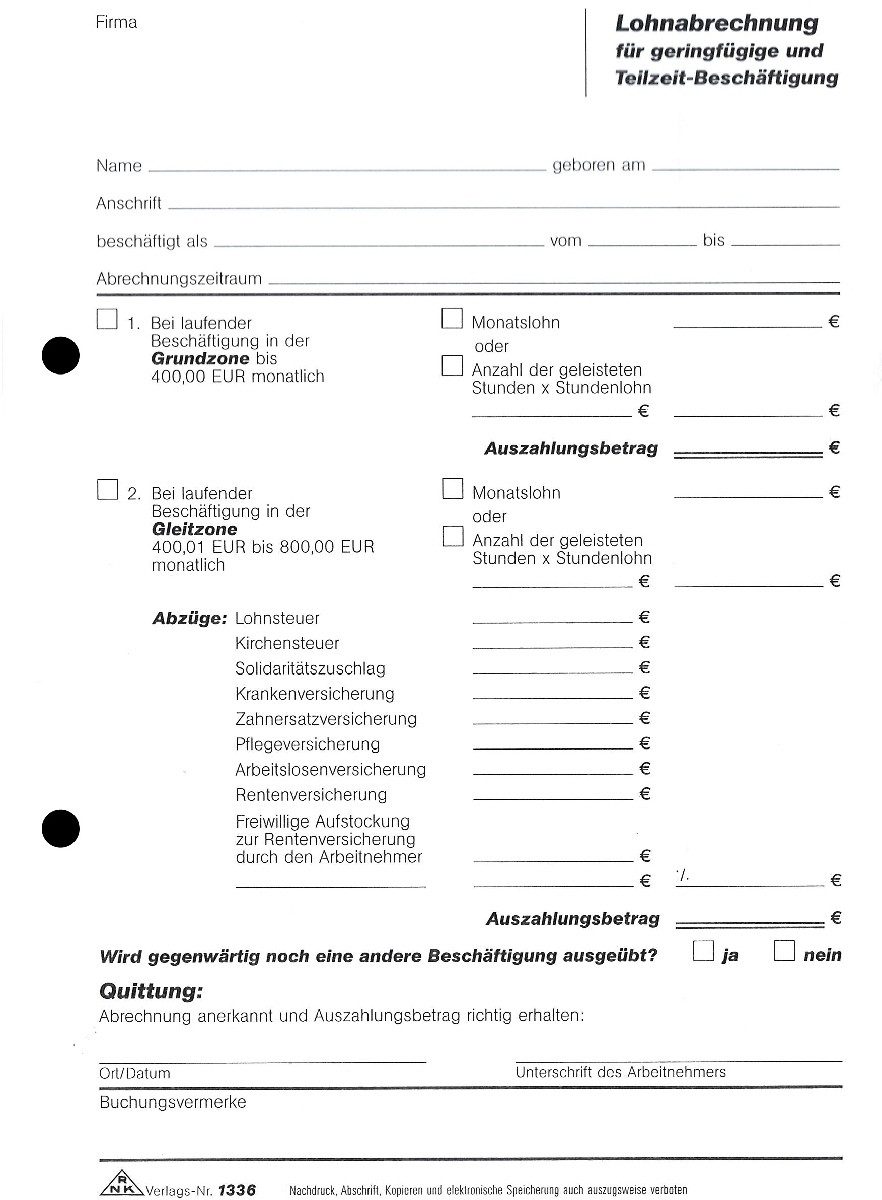 Formularblock Lohnabrechnungsblock A5 Minijobs Abheftlochung vorhanden A5 50 Blatt