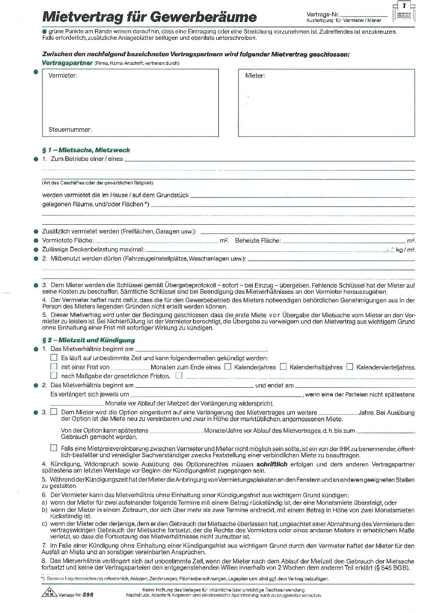 RNK Verlag Formularblock Mietvertrag für Gewerberäume A4 3 Blatt (50 Stück)