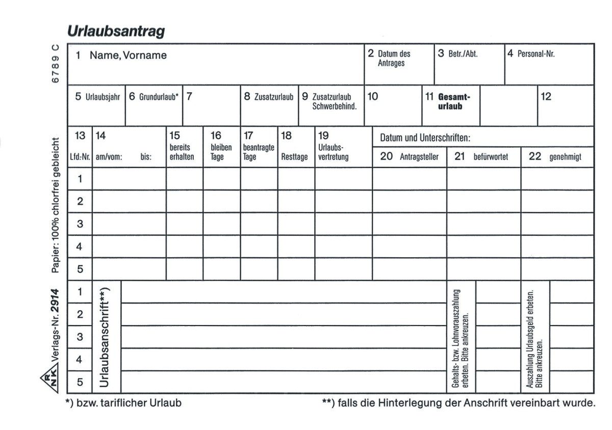 RNK Verlag Formularblock Urlaubs-Freistellungsantragsblock A6 quer 50 Blatt (10 Stück)