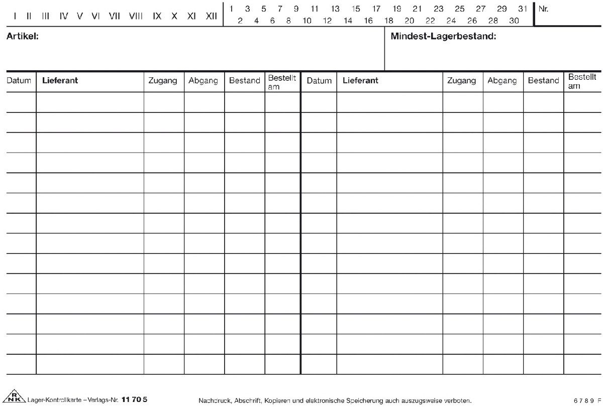 RNK Verlag Karteikarten Lager-Kontrollkarte mit Zahlenleiste A5 quer liniert weiß VE=100 Stück