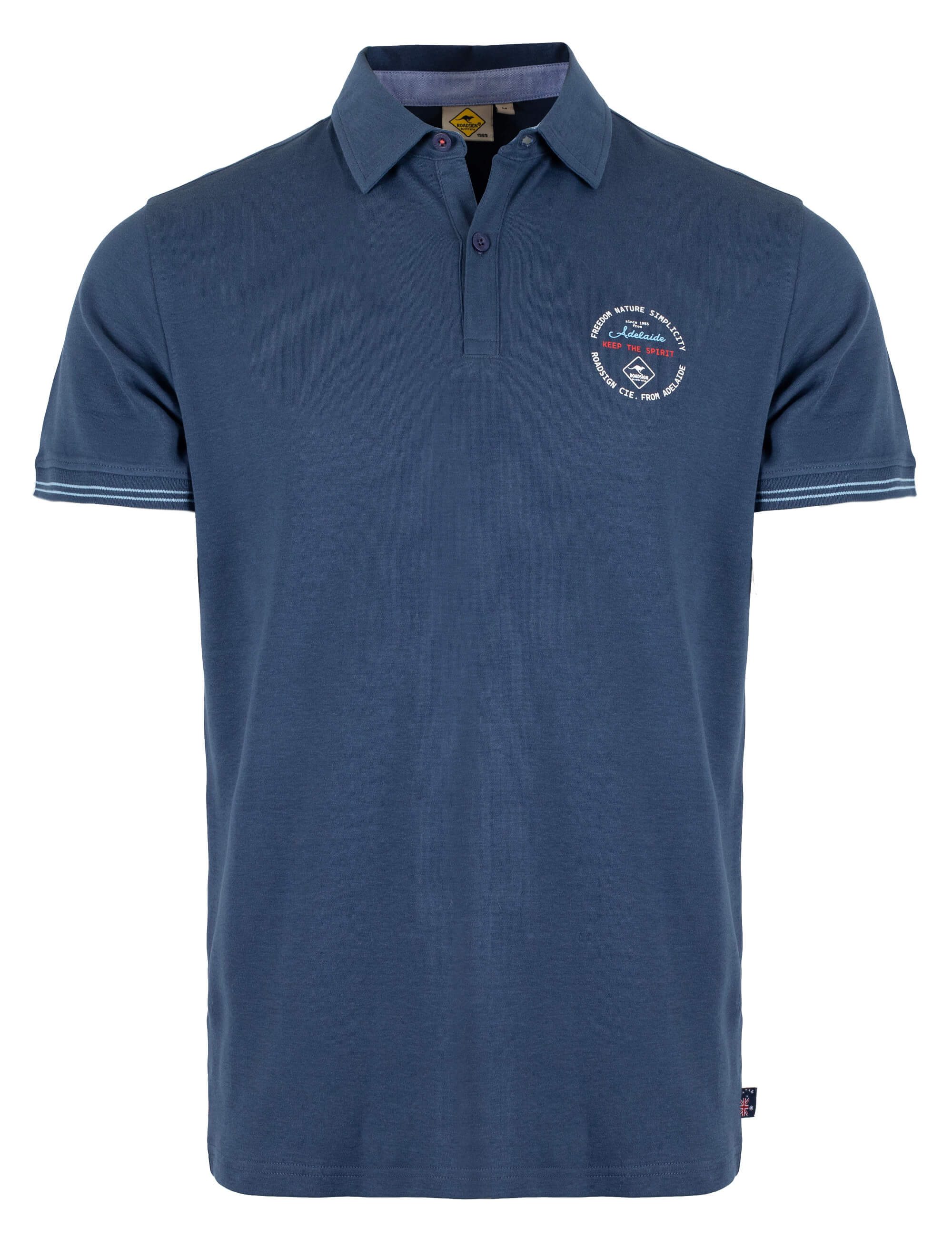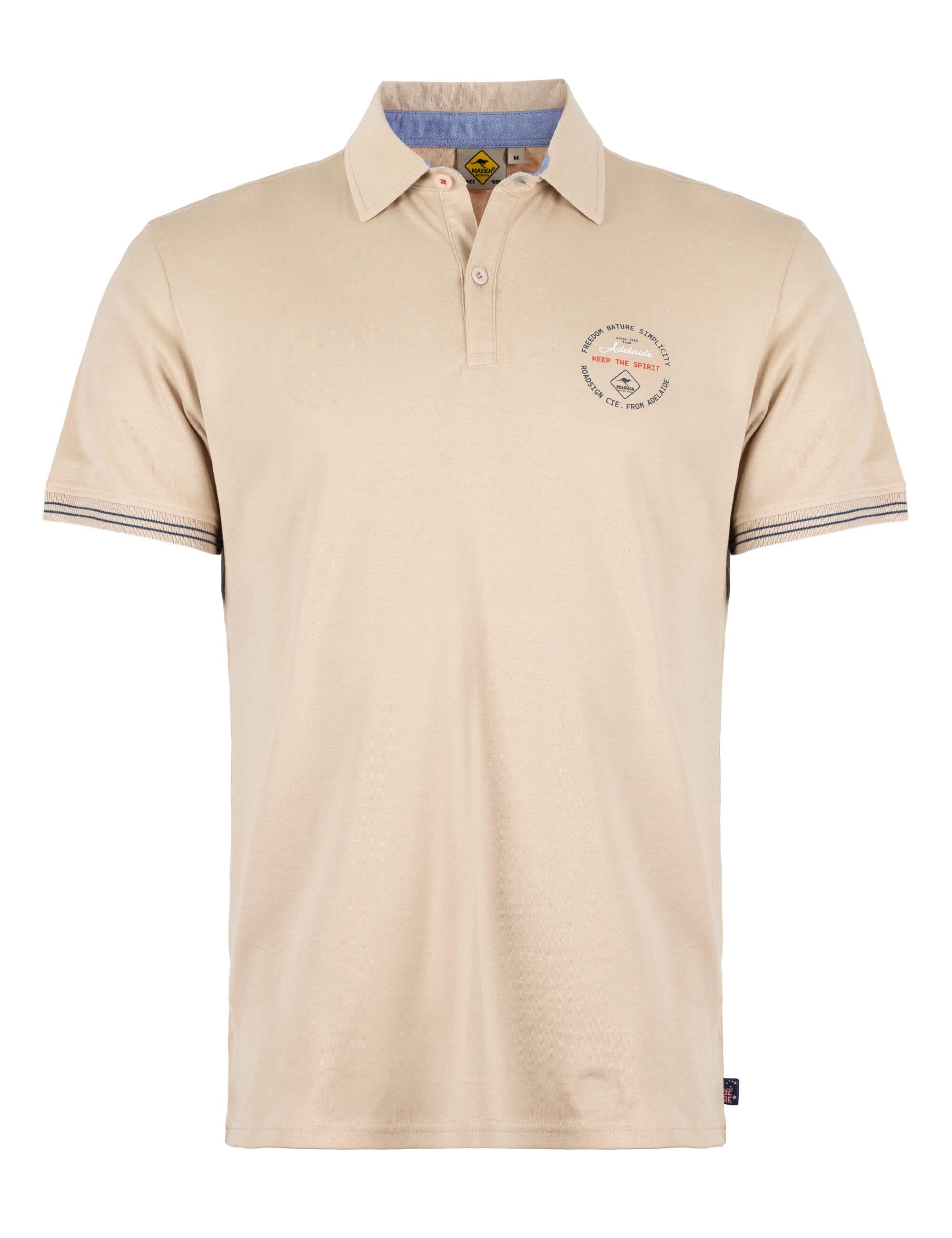 Poloshirt für Herren von ROADSIGN australia Unser Herren-Polo-Shirt aus Baumwolle kombiniert klassischen Stil mit sportiven Details. Der kleine Logoprint auf der Brust setzt dezente Markenakzente, während die Rippbündchen mit Kantenringel für einen sportlichen Look sorgen. Dank der Knopfleiste und dem kontrastierten Steg wird das Shirt zum idealen Begleiter für sommerliche Aktivitäten oder entspannte Freizeitmomente. Erhältlich in zwei Farben, passt es zu jedem Anlass und lässt sich vielseitig kombinieren – ob mit Shorts für einen Strandtag oder mit Jeans für einen smarten Freizeitlook. Das perfekte Oberteil für Herren, die Wert auf Komfort, Qualität und sportliche Eleganz legen. Ideal für Freizeit, Sport oder Sommerabende.