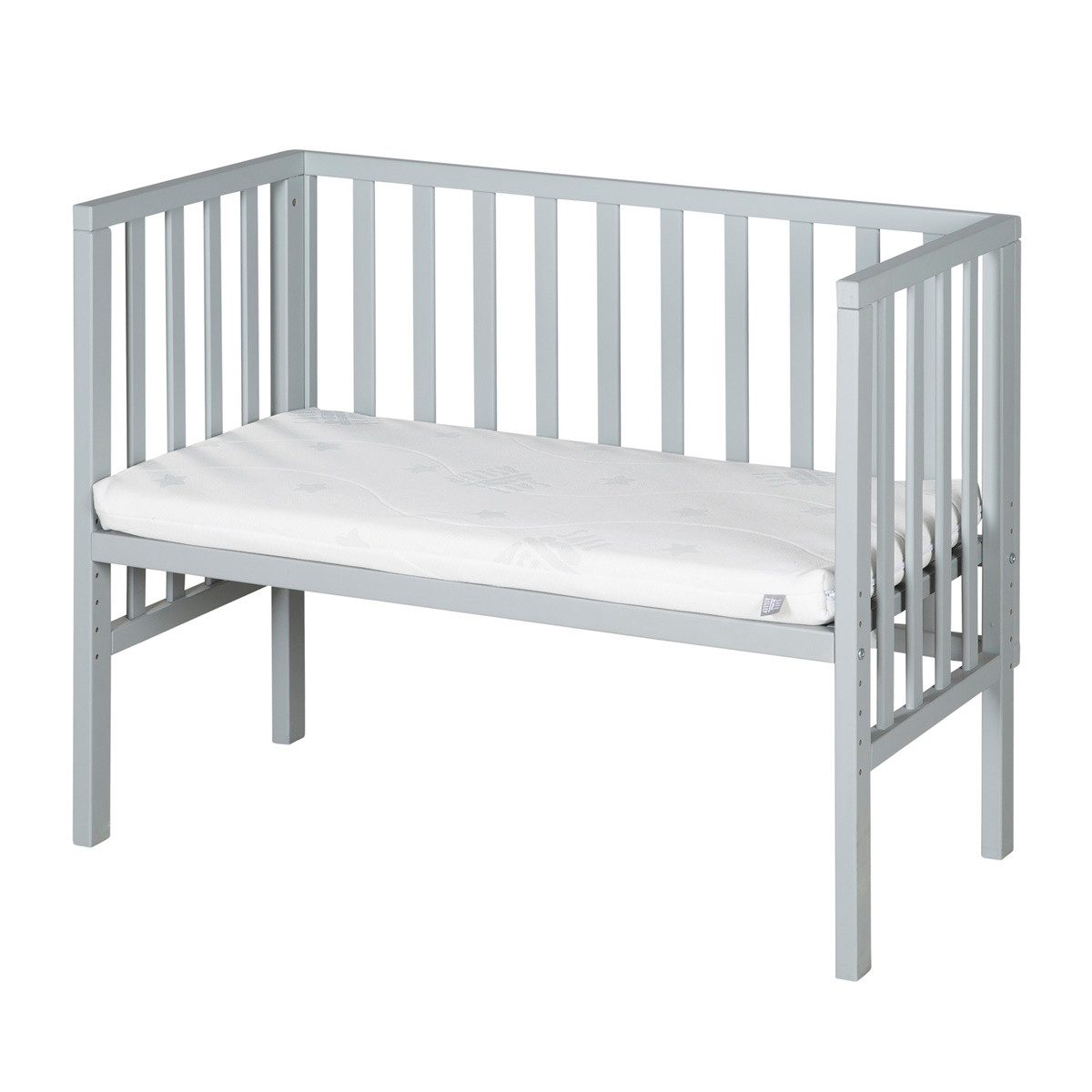Das roba 2 in 1 Beistellbett ist ein zuverlässiger und sicherer Begleiter für die ersten Monate Ihres Babys. Mit seinem stilvollen Design passt es perfekt in jede moderne Wohnung und bietet ein Maximum an Sicherheit sowie Komfort. Das Seitengitter aus Holz ist lackiert und verleiht dem Beistellbett eine moderne Note. Die mitgelieferte Barriere aus robustem Canvas Stoff sorgt dafür, dass ein Überrollen verhindert wird und garantiert so einen ungestörten Schlaf. Die Matratze aus der Serie 'safe asleep®' ist circa 5 cm dick. Der abnehmbare Jacquard-Bezug ist bei 60 Grad waschbar und eignet sich insbesondere für allergische Kinder. Die atmungsaktive Matratze garantiert eine optimale Luftzirkulation und bietet so einen erholsamen Schlaf. Die verstellbaren Stufen ermöglichen es, das Stubenbett an jedes Elternbett anzupassen – mit roba Verlängerungsset (Art. Nr. 204105) auch an größere Boxspring- / Spezialbetten. Die Höhe des Beistellbettes kann zwischen 22,4 und 41,6 cm insgesamt 7-fach verstellt werden. Dadurch wird eine sichere Verbindung zwischen den beiden Betten hergestellt und Ihr Baby ist stets in Ihrer Nähe. Das patentrechtlich geschützte Stubenbett entspricht den aktuellsten Sicherheitsstandards nach Norm EN 1130:2019 und bietet somit ein Maximum an Sicherheit. Die Liegefläche des Anstellbettes beträgt 90 x 45 cm und ist somit ideal für die ersten Monate Ihres Babys – die Gesamtmaße entsprechend H 75,5 x B 99,5 x T 47,0 cm. Все verwendeten Materialien des roba Beistellbettes sind schadstoffgeprüft, zertifiziert und werden regelmäßig kontrolliert. Dadurch können Sie sicher sein, dass Ihr Baby in einem sicheren und gesunden Umfeld schläft. Das roba Beistellbett ist einfach zu montieren und lässt sich mit den mitgelieferten Gurten sicher am Elternbett befestigen. Es ist nutzbar bis sich das Kind selbst hochziehen, sitzen oder knien kann (ca. 6-12 Monate) und kann danach als Bank weiterverwendet werden – bis zu einem Gewicht von 65 kg. Mit dem roba 2 in 1 Beistellbett schaffen Sie die optimalen Voraussetzungen für eine sichere und gesunde Schlafumgebung für Ihr Neugeborenes.