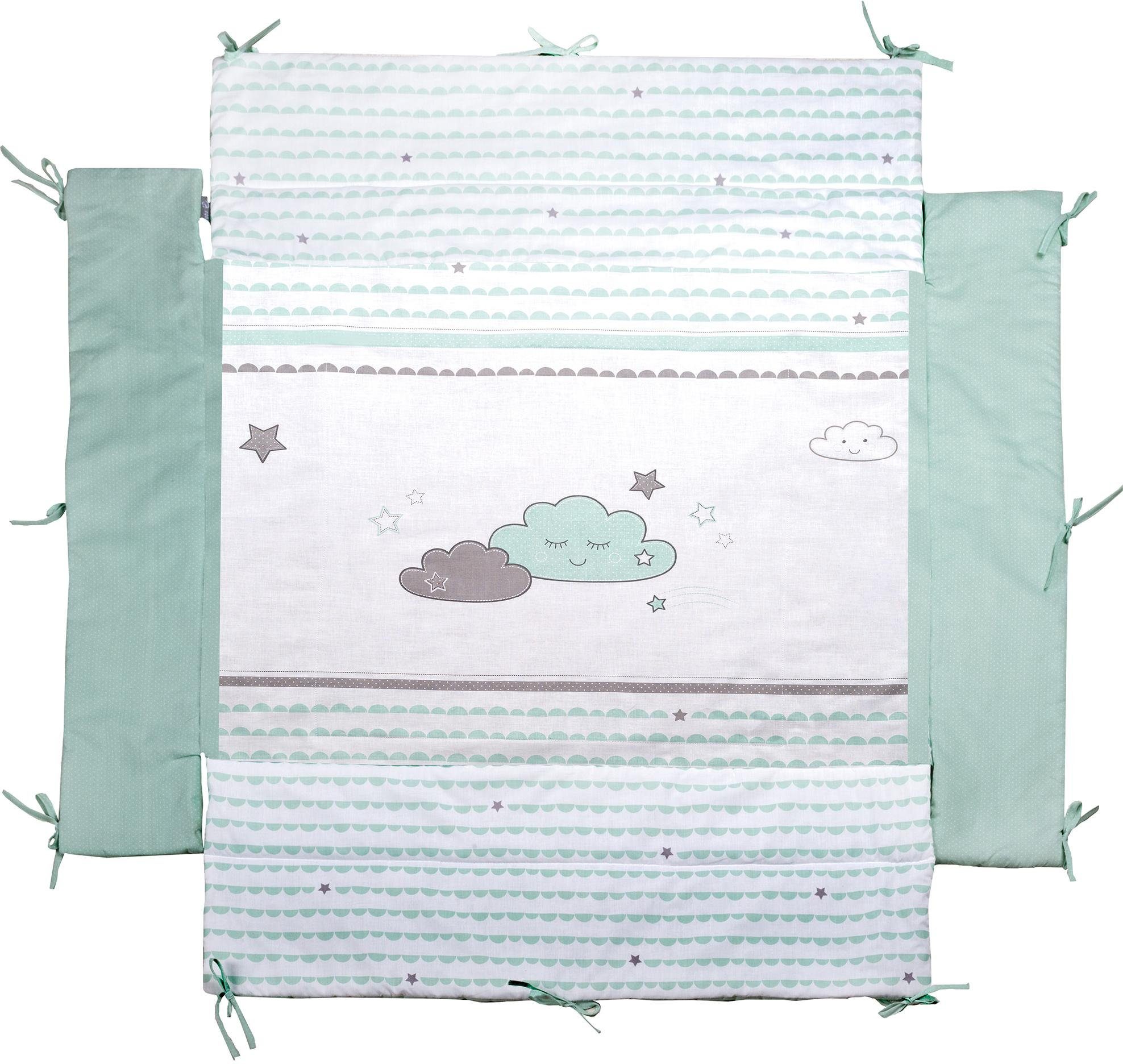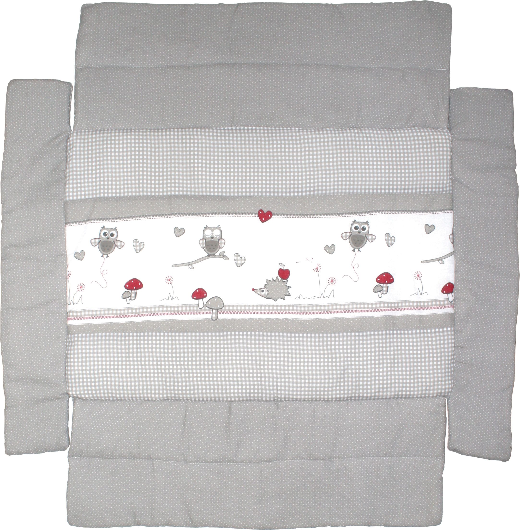 Die Laufgittereinlage besteht aus einem pflegeleichten Baumwollpolyestergemisch (Bezug aus 65 % Polyester und 35 % Baumwolle, Polsterung aus 100 % Polyestervlies) und ist maschinenwaschbar und trocknergeeignet.