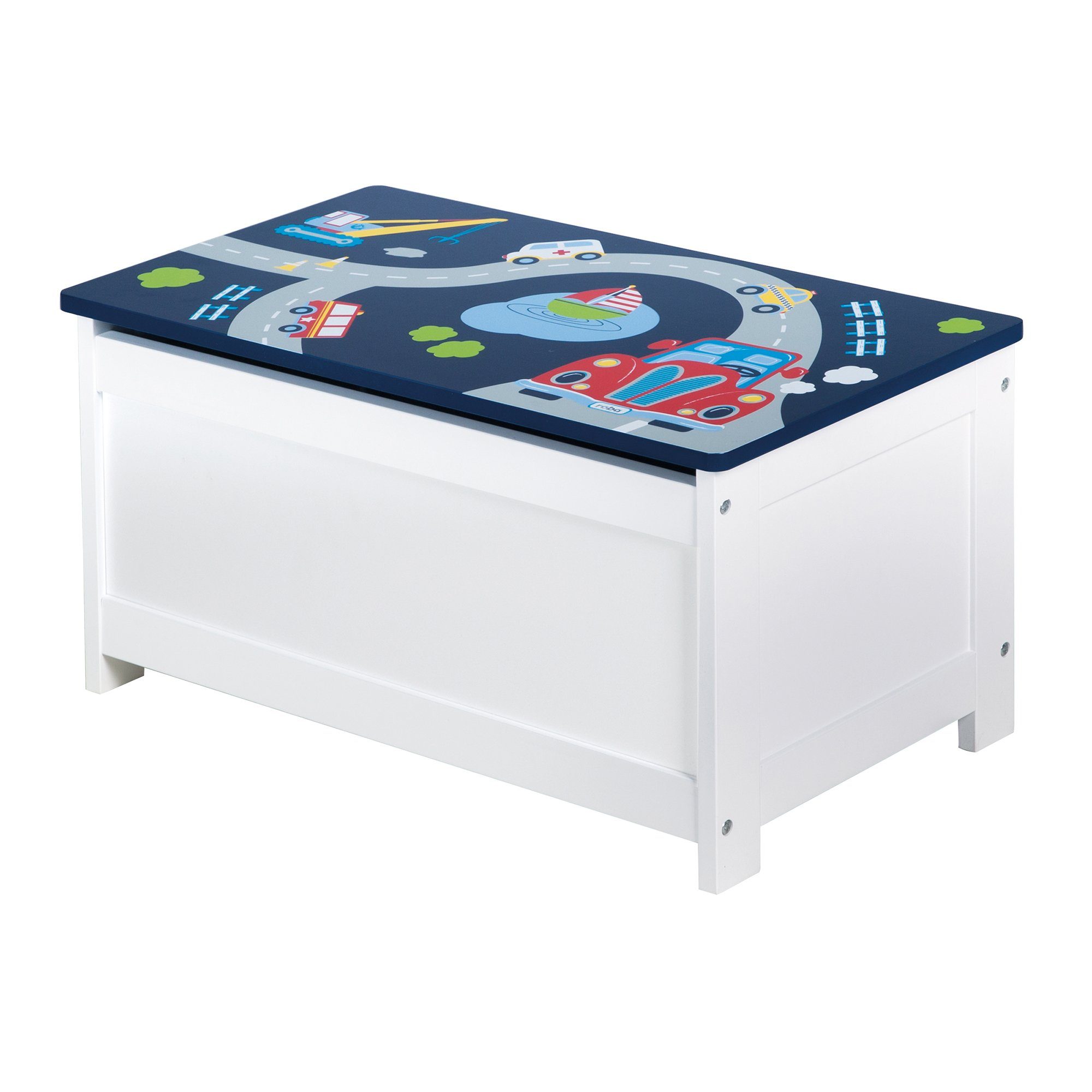 Die roba Spielzeugtruhe aus lackiertem und bedrucktem MDF ist ideal auf die Sitzbedürfnisse von 2- bis 10-jährigen Kindern zugeschnitten. Die Truhenbank ist multifunktionell als Bank und Aufbewahrungskiste zu gebrauchen und lässt sich wunderbar mit den weiteren Kindermöbeln der Serie kombinieren. Auf dem stabilen Kindermöbelstück kann Ihr Nachwuchs von klein auf komfortabel Platz nehmen, denn die Sitzhöhe beträgt 30 cm. Der aufklappbare Truhensitz mit sicherer Deckelbremse birgt Stauraum für allerlei Spielzeug. Die Kindertruhenbank lässt sich zudem mit den passenden Kindersitzgruppen wunderbar zu einer Sitzgruppe verwandeln und macht das Kinderzimmer so zum Treffpunkt für Spiel und Kreativität.