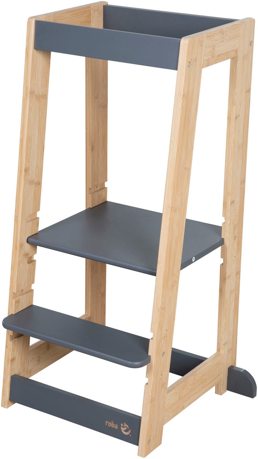 Entdecken Sie den nachhaltigen Montessori Lernturm von roba – ein hochwertiger Lernbegleiter aus FSC-zertifiziertem Bambusholz, der sowohl als Küchenhelfer als auch als Entdeckerturm in allen Wohnbereichen verwendet werden kann. Dieser stabile und sichere Tritthocker für Kinder wurde nach dem Montessori-Prinzip gestaltet, um die Eigenständigkeit und den Entdeckergeist Ihres Kindes zu fördern. Der Lernturm aus widerstandsfähigem und langlebigem FSC-zertifiziertem Holz wächst – dank seines höhenverstellbaren Stand- und Fußbretts – mit Ihrem Kind. Schon die Kleinsten können auf Augenhöhe in der Küche stehen und Ihnen beim Kochen helfen. Die Entscheidung für Bambus als Material für diesen Lernturm ist besonders nachhaltig: Bambus wächst rasend schnell, mit Wachstumsraten von bis zu einem Meter pro Tag. Im Ernteprozess stirbt die Bambuspflanze nicht ab, sondern wächst nach und trägt zur Schonung der Ressourcen bei. Zudem produziert Bambus 35% mehr Sauerstoff als herkömmliche Bäume, was zur Verbesserung der Luftqualität beiträgt. Die Montage des Lernturms ist einfach und unkompliziert. Mit einer robusten Konstruktion aus FSC-zertifiziertem Massivholz ist er bis zu 80 kg belastbar. Dank der verlängerten Füße zur linken und rechten Seite ist er kippsicher und gewährleistet die nötige Sicherheit während der Nutzung. Mit einer Höhe von 88 cm, einer Breite von 54 cm und einer Tiefe von 43,5 cm bietet er ausreichend Platz für die Nutzung im eigenen Wohnbereich. Die Standfläche verfügt über drei Stufen in den Höhen 34,5 cm, 39,5 cm und 44,5 cm, während die Treppenstufen in der Höhe auf 17,5 cm, 22,5 cm und 27,5 cm verstellbar sind. Entscheiden Sie sich bewusst für den roba Montessori Lernturm aus FSC-zertifiziertem Bambusholz und eröffnen Sie Ihrem Kind die Möglichkeit, bereits im Kleinkindalter aktiv am Familienleben teilzunehmen. Schaffen Sie eine vertraute und umweltfreundliche Umgebung, in der sich die Fähigkeiten Ihres kleinen Lieblings geschützt entfalten können, unterstützt durch die herausragenden Merkmale von Bambus als nachhaltigem und widerstandsfähigem Material.