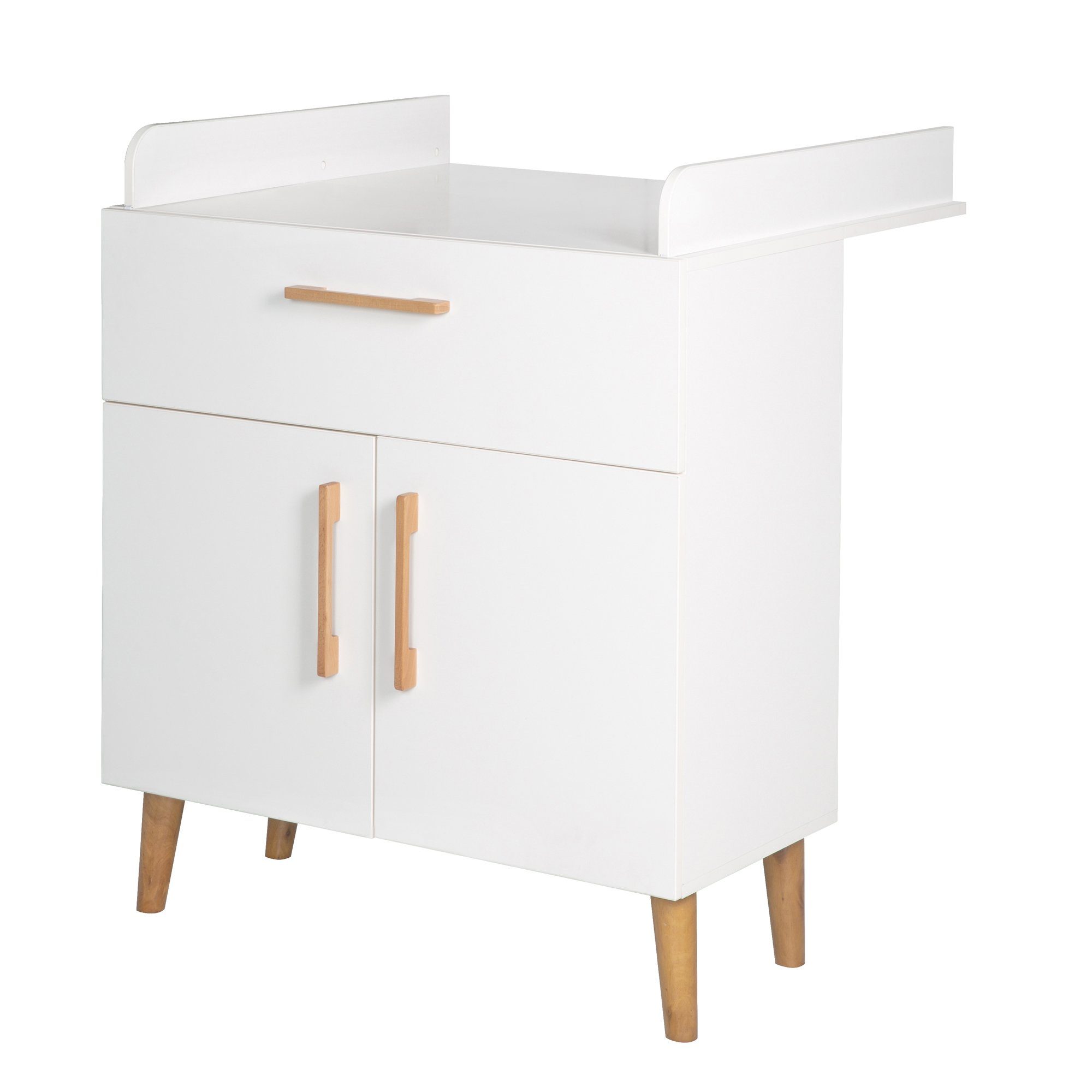 Der Wickeltisch im trendigen, skandinavischen Stil bietet viel Stauraum für Wickelutensilien. So haben Sie bei der Babypflege alles schnell griffbereit