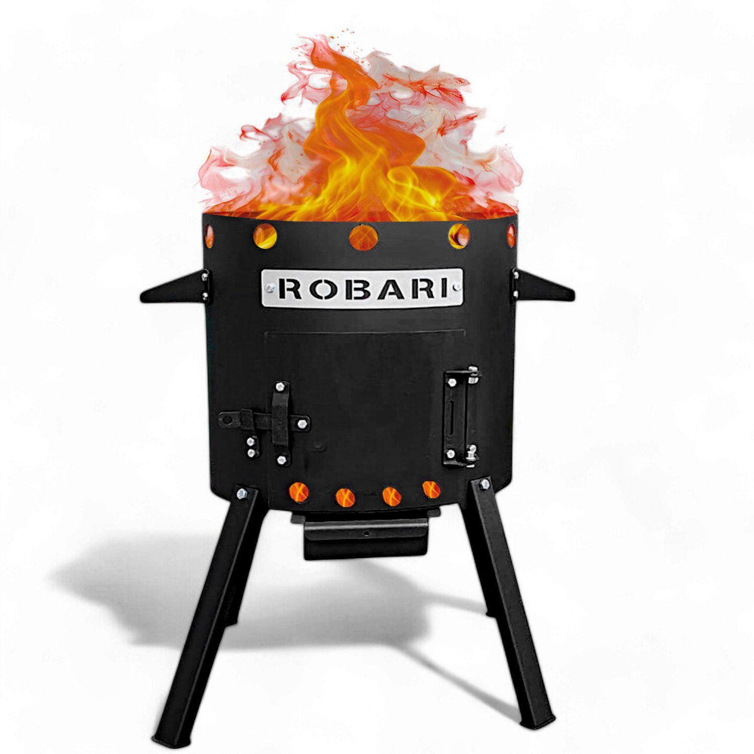 Feuerofen ist für das sichere und schnelle Kochen im Freien . Das Produkt ist ein Metallzylinderkörper, 4 x Beine, eine Tür, eine Aschebehälter.