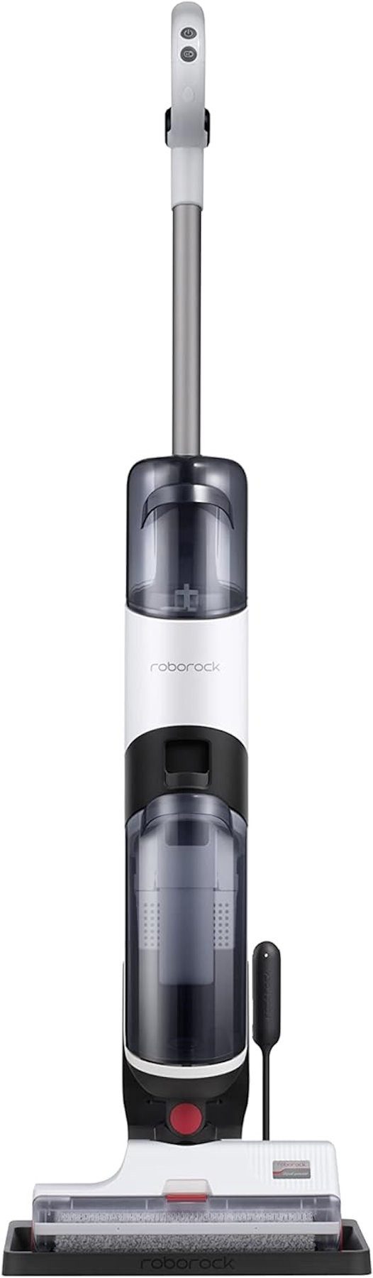 Steinböden, Fliesen, Hartholz- oder Laminatböden, Saugen und Wischen in nur einem Arbeitsgang. Der Roborock DYAD erkennt nasse oder trockene Verschmutzungen automatisch und stimmt die Saugleistung und den Wasserfluss für eine optimale Reinigung ab. Wischen Sie verschüttetes mit einem Wisch auf und hinterlassen Sie einen streifenfreien, sauberen Boden. Kabellos und Leistungsstark mit 3 Walzen! Die selbstständige Selbstreinigungsfunktion schubbt die Rollen und spült die Wasserleitungen, so dass Sie sich Ihre Hände nicht mehr schmutzig machen müssen.