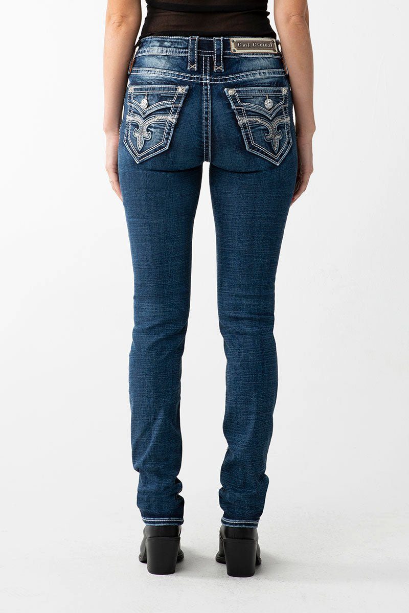 Die akribischen Ziernähte, das gestickte Signature Reverse Lilienmotiv, der hochwertige RR-Leder-Rückseiten-Patch und die intensiven Honeycombs und Whiskers machen diese Jeans zu einem exklusiven Begleiter für einen stilvollen und modernen Auftritt. Entscheiden Sie sich jetzt für diese Damen-Straight-Jeans und setzen Sie auf zeitlose Eleganz mit höchster Qualität und raffinierten Details, inspiriert von der handwerklichen Tradition Amerikas.