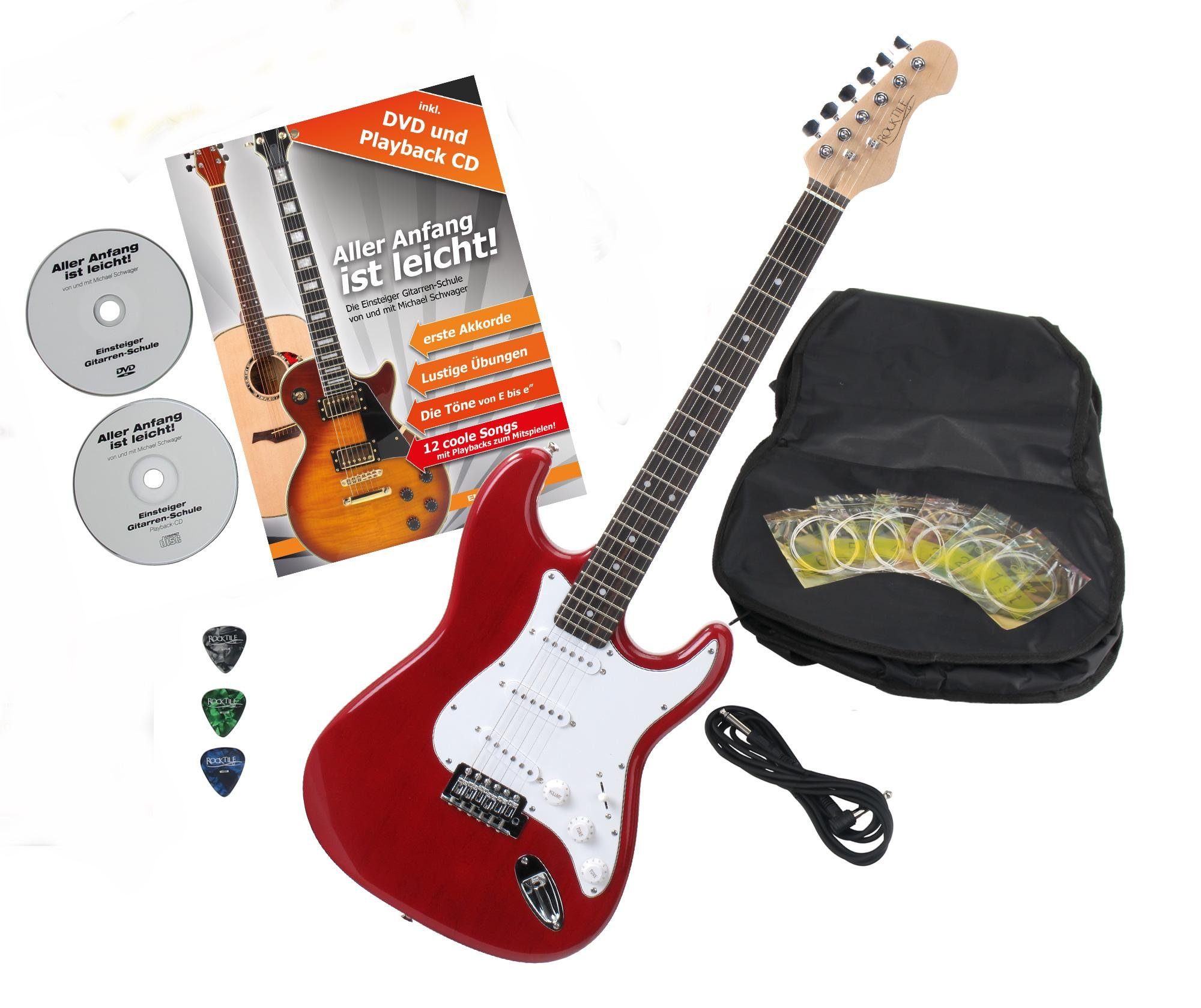 Lieferumfang | 1 x E-Gitarre 1 x Gitarrenverstärker 1 x Gitarrentasche 1 x Saitensatz für E-Gitarre 1 x Gitarrengurt 1 x Tremolohebel 1 x Gitarrenkabel |