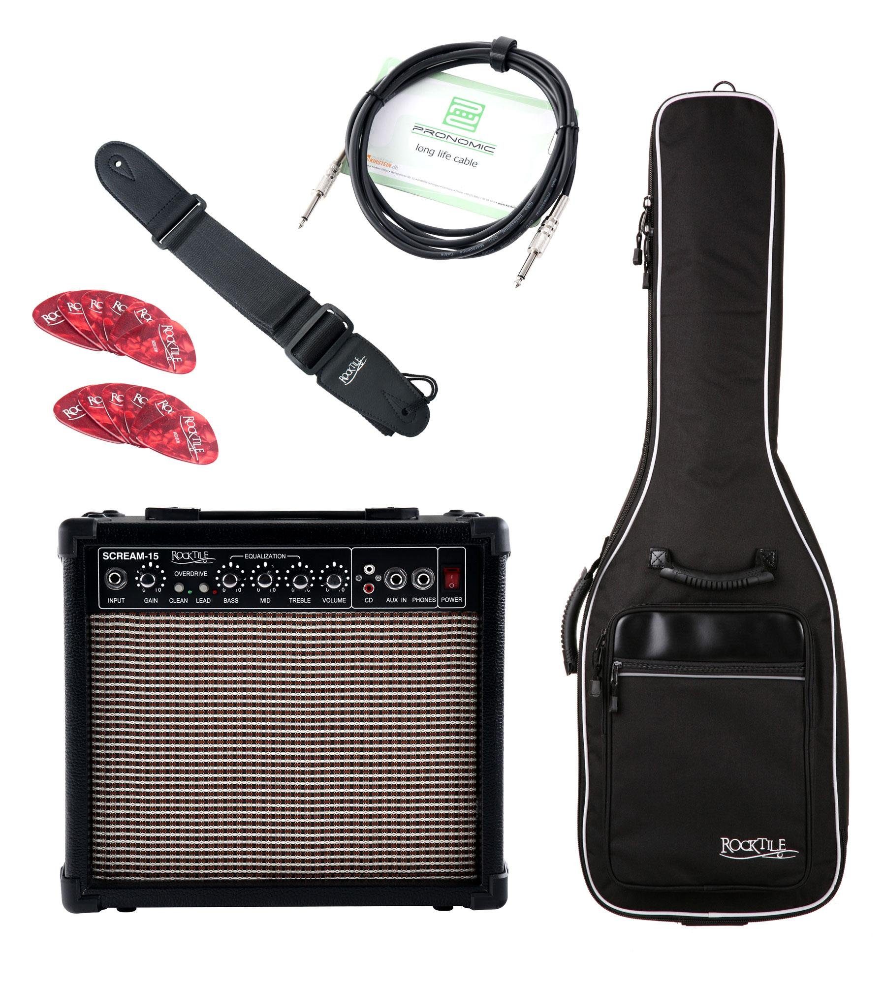 Lieferumfang | 1x Verstärker 1x Gigbag 1x Gitarrengurt 1x Instrumentenkabel 3m 1x Kabelklette 12x Plektrum Medium |