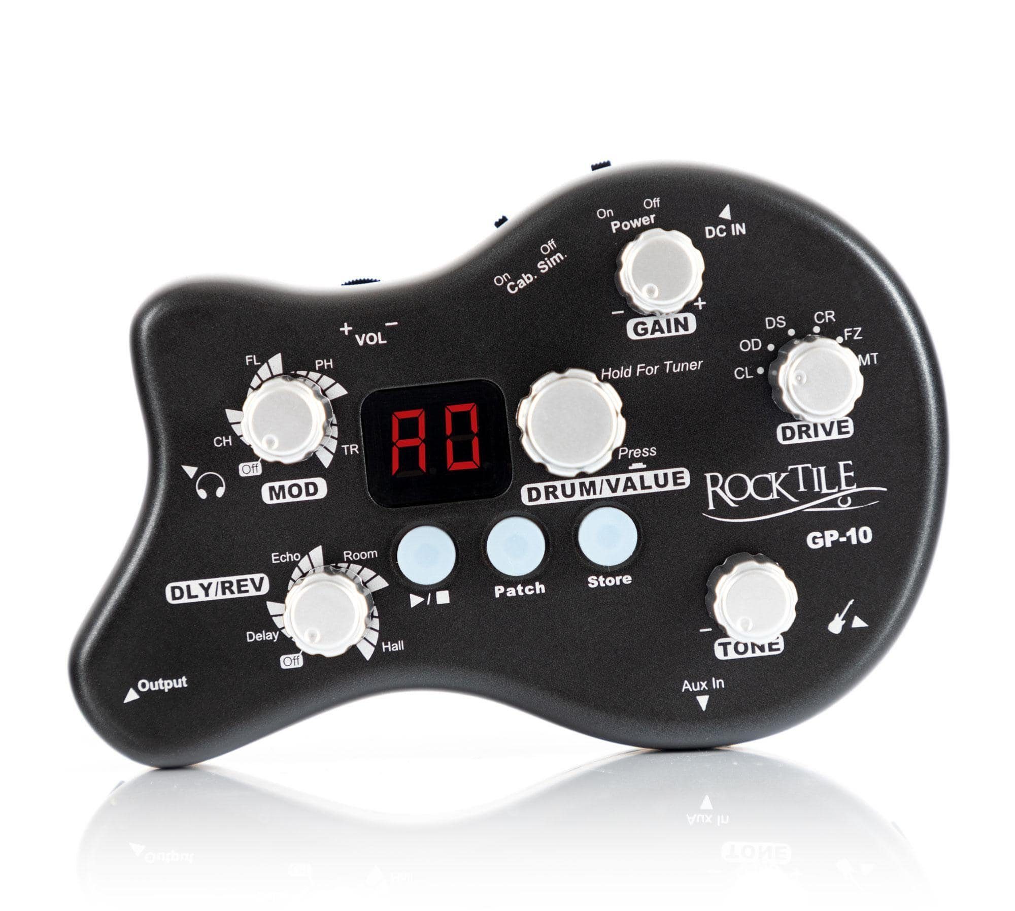 Der Rocktile GP-10 bietet Dir 6 hochwertige Amp Models von Clean über Overdrive/Distortion, Fuzz bis hin zu metalmäßigem High Gain. Mit den Gain- und Tone-Reglern kannst Du den ausgewählten Amp klanglich individuell anpassen und eine zuschaltbare Speaker-Simulation bietet Dir über Kopfhörer ultra-realistische Sounds auch ohne angeschlossenen Verstärker.