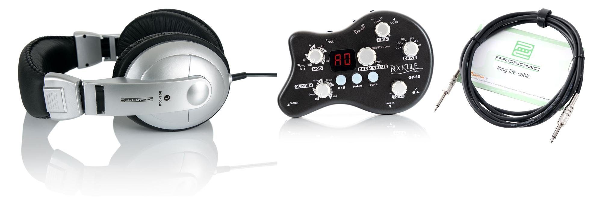 Du willst auch unterwegs immer üben können? Du brauchst ein kleines Recording Tool für zu Hause? Der super-kompakte Rocktile GP-10 Headphone Amp im praktischen Practice Kit mit einem hochwertigen, dynamischen DJ-Kopfhörer und dem passende Instrumentenkabel ist die Lösung!