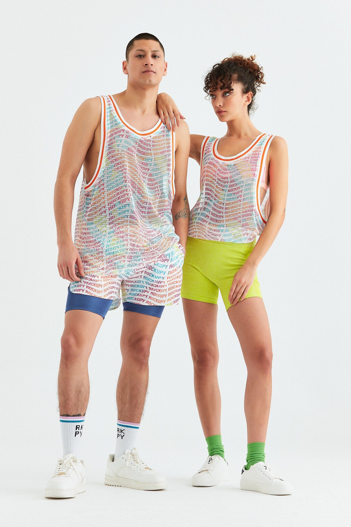 Das weiche Unisex-Tanktop aus Netzstoff ist der Hingucker diesen Sommer. Der Kragen und die Ärmel sind gerippt und das Modell in weiß hat einen Silikonpatch mit dem Originallogo auf der Brust. Das Modell im Allover-Druck ist einzigartig durch den speziellen Logodruck.