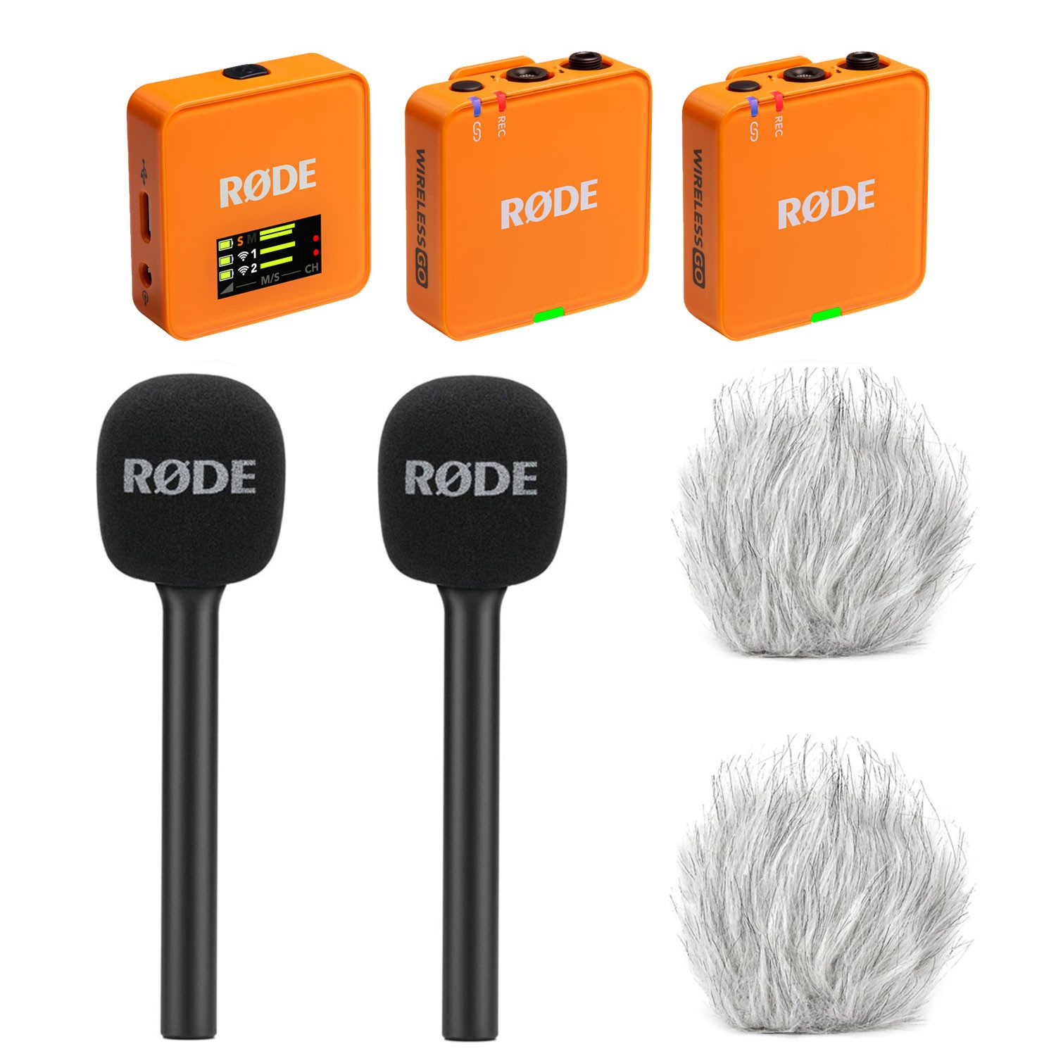 Lieferumfang | Mikrofon-Funksystem, Zubehör, 2x Handadapter, 2x Windschutz |