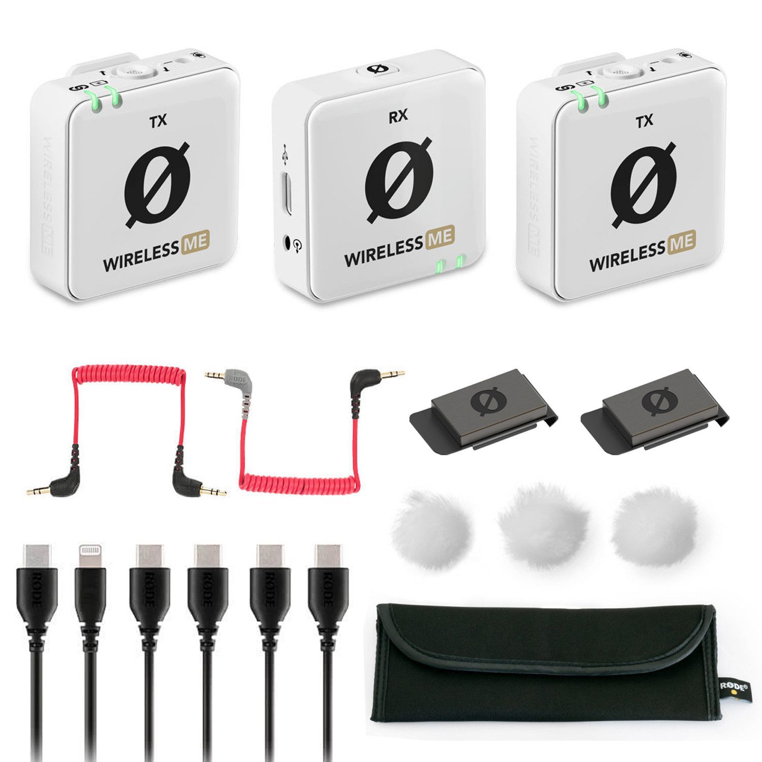 Lieferumfang | Empfangsmodul, 2x Sendemodul, 3,5 mm TRS-Anschlusskabel, 3,5 mm TRS auf TRRS Spiralkabel, 2x USB-C auf USB-C Kabel, USB-C auf Lightning Kabel, 3x Fellwindschutz für Außenaufnahmen, 2x Magclip Go, Neopren-Transportetui |