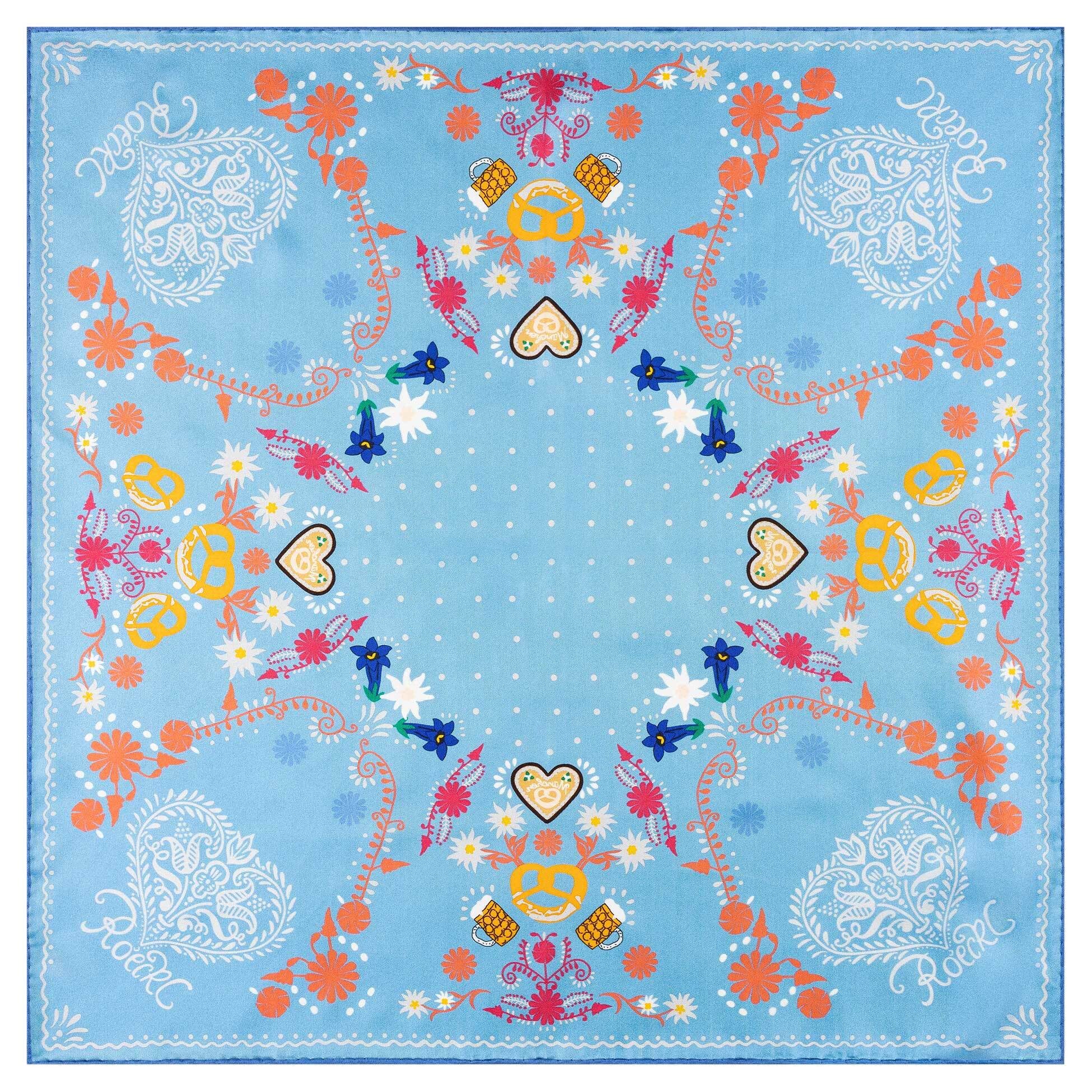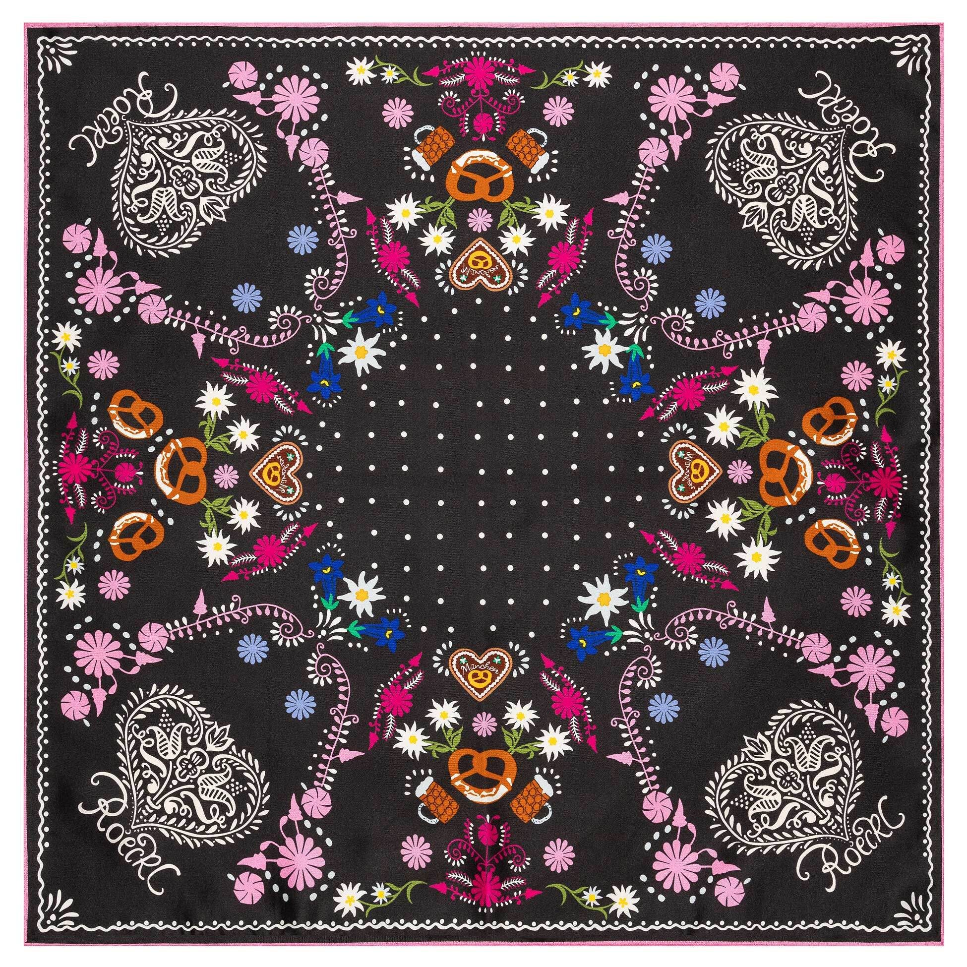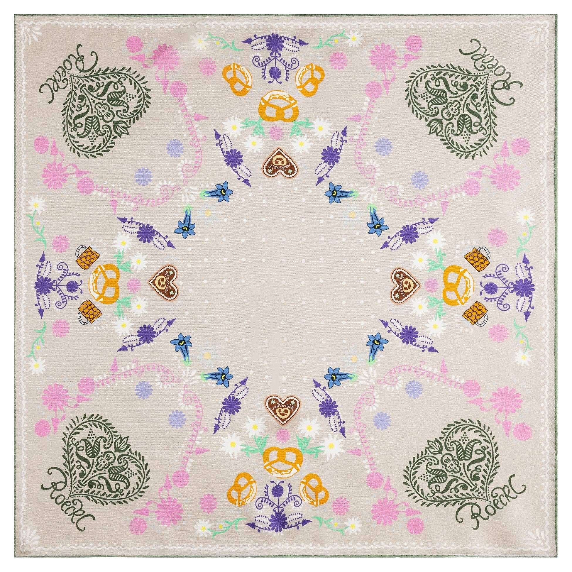 Das ROECKL Bavaria Niki Tuch Resi wurde aus fester Seide gefertigt. Sein außergewöhnlicher Aufdruck, bestehend aus einer Kombination aus einem Herzen, den Blüten, Ranken und unserem Markennahmen, stammt aus dem frühen 20. Jahrhundert und erinnert uns an unsere bayerischen Wurzeln. Abgerundet wird das Tuch durch einen rollierten Saum.