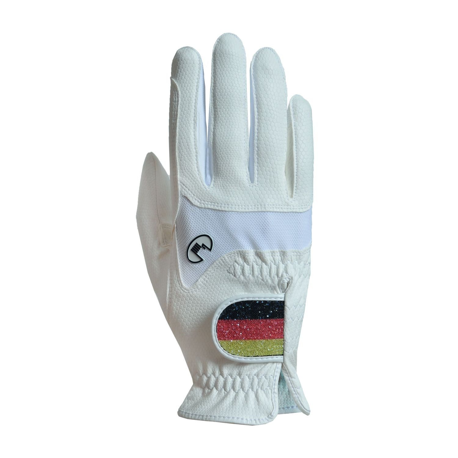 Der Roeckl Reithandschuh „Maryland“ ist ein hochwertiger Nationenhandschuh, welcher mit funkelnder Swarovski-Flagge am Verschluss ausgestattet ist. Neben der schicken Optik überzeugt der Roeckl Maryland Handschuh auch mit hervorragenden Eigenschaften. Das Obermaterial ist sehr atmungsaktiv, elastisch und geschmeidig. So sitzt er wie eine zweite Haut. Luftig-leichtes Micro Mesh garantiert eine noch bessere Elastizität und Passform. Die Innenhand ist mit dem bewährten Roeck-Grip ausgestattet: guter Grip, rutschfest, feinfühlige Verbindung zum Pferdemaul.