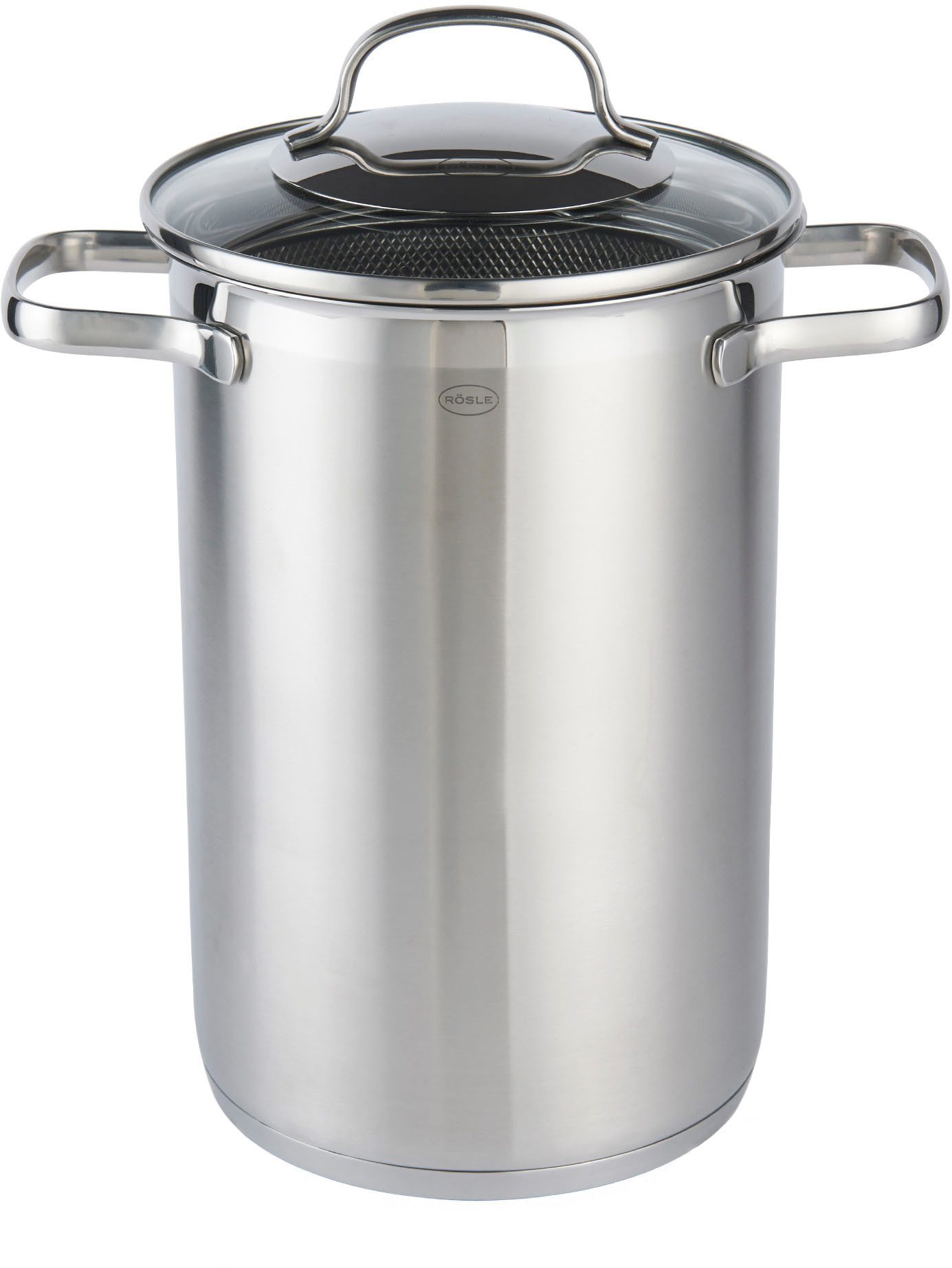Der RÖSLE Spargelkochtopf ELEGANCE aus hochwertigem Edelstahl 18/10 ist Ihr perfekter Küchenhelfer für die Spargelsaison. Dieser speziell entwickelte Topf mit einem Durchmesser von 16 cm und einem Volumen von 4,5 Litern ermöglicht es Ihnen, Spargel und Pasta optimal zu garen. Der praktische Einsatz erleichtert das sichere Entnehmen Ihrer Speisen, während das robuste Material eine einfache Reinigung und lange Haltbarkeit verspricht. Entdecken Sie die Vielseitigkeit und die hohe Qualität von RÖSLE, einem vertrauenswürdigen Namen in jeder Küche!