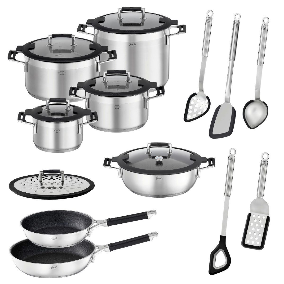 Das 13teilige Profi-Set SILENCE PRO von Rösle beinhaltet alles, was man zum Kochen benötigt. Das Set umfasst verschieden große Töpfe mit Deckel, Pfannen und die gängigsten Küchenhelfer. Das Set eignet sich sowohl für Kochneulinge als auch Kochprofis.